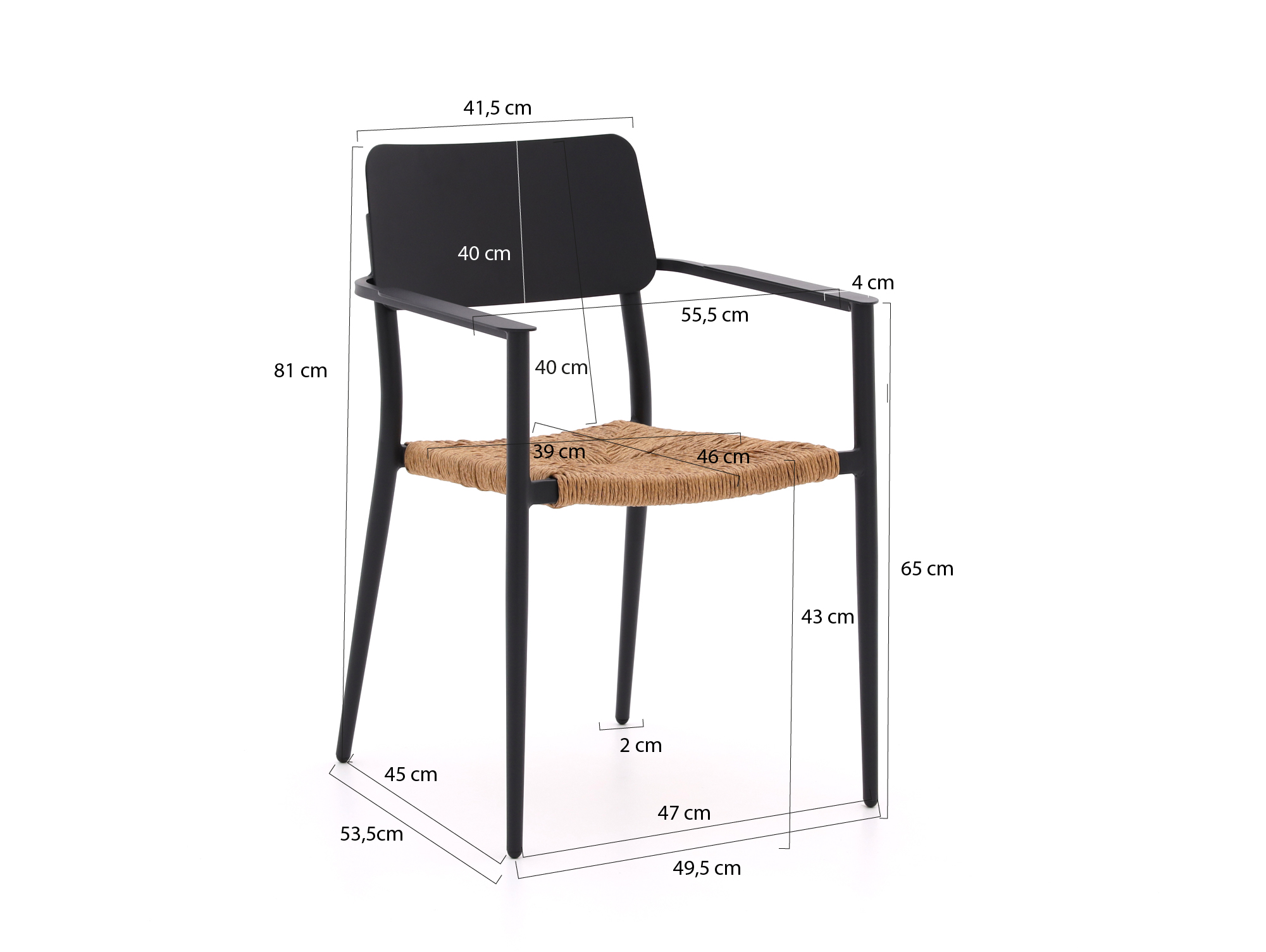 De stapelbare tuinstoelen hebben een aluminium frame. Dit is onderhoudsarm en licht in gewicht. De zitting is gemaakt van twist wicker. Dit is een gevlochten kunststof draad die gedraaid wordt bevestigd om het frame. De voordelen van twist wicker zijn dat het licht in gewicht en onderhoudsarm is. Reinig het materiaal eenvoudig met een sopje van lauwwarm water en groene zeep, in combinatie met een zachte borstel, doek of spons. In de winter raden wij aan de tuinmeubelen binnen op te bergen. Als dit niet mogelijk is, kan het onafgedekt buiten blijven staan. Let er op bij vorst wel op, dat belasting de kans breken van het draad vergroot.