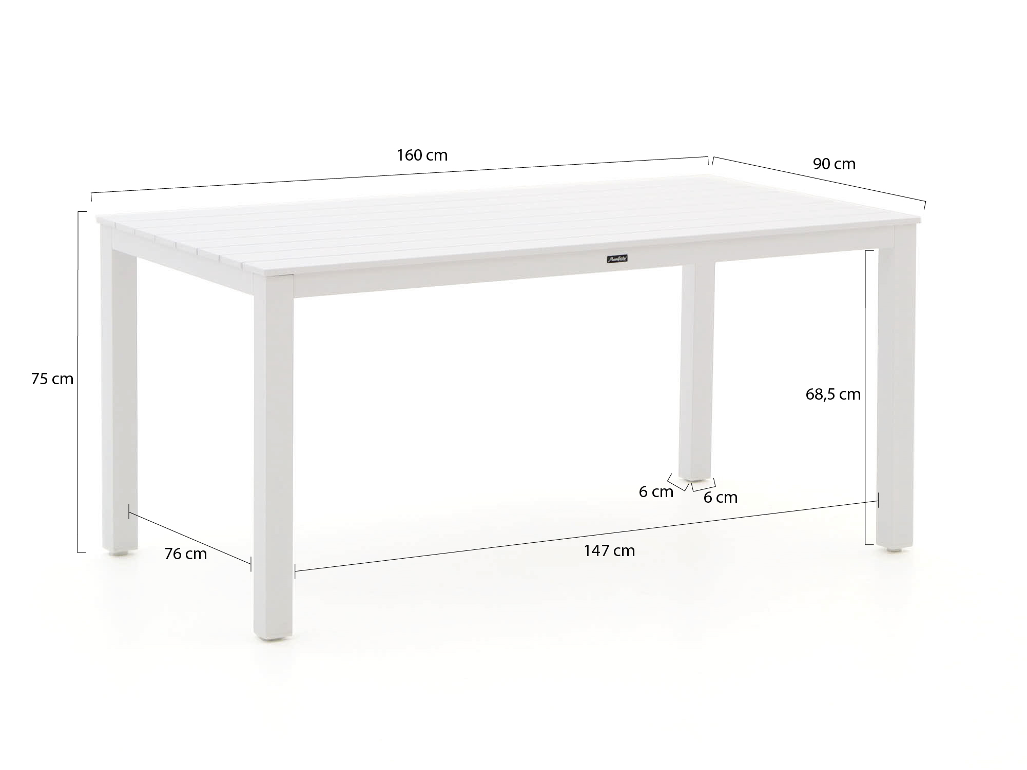 • Compacte tafel van 160 cm: De rechthoekige tafel biedt plek aan 4 personen, maar past ook op een wat smaller terras of balkon.