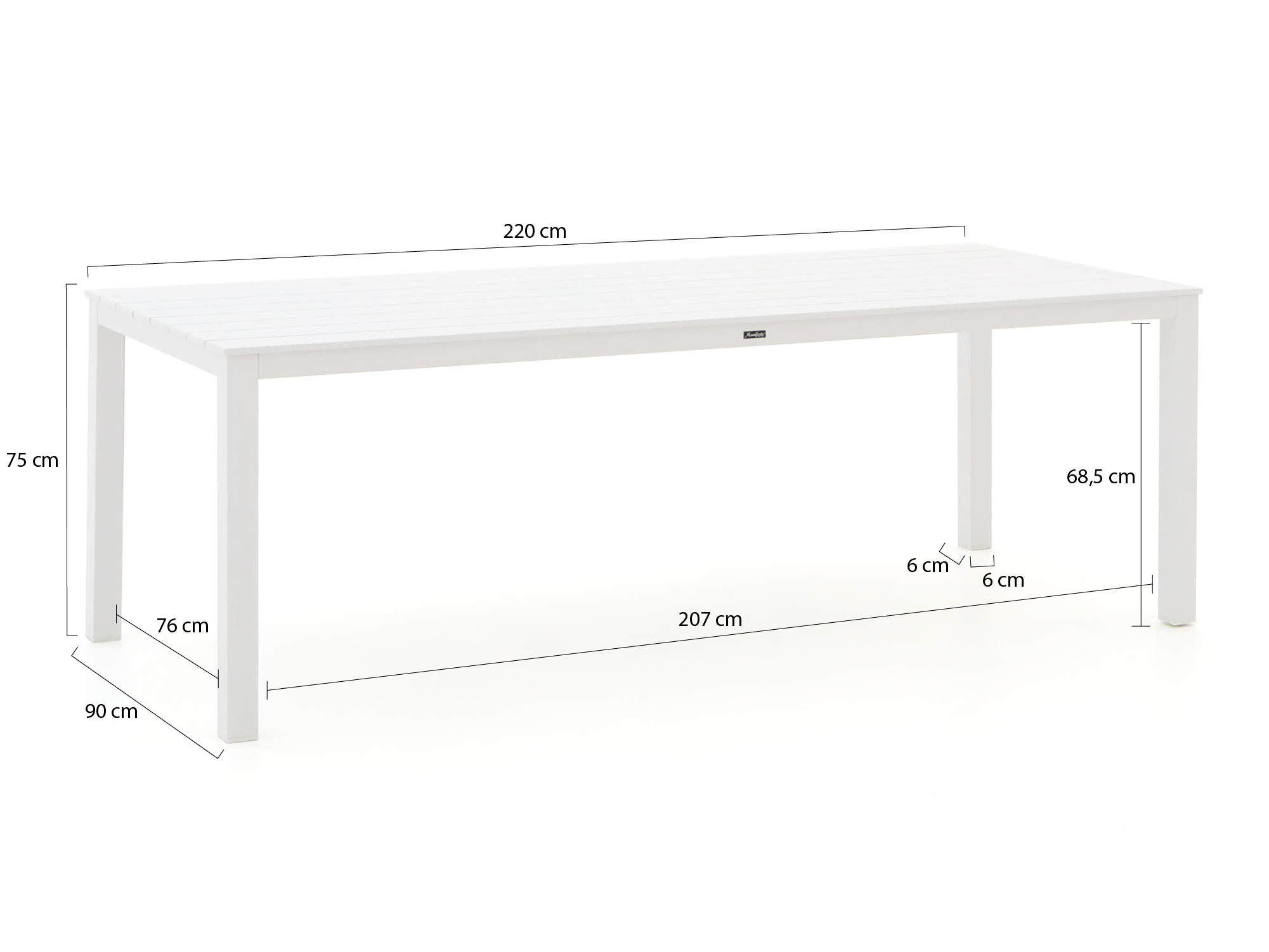 • 220 cm lange rechthoekige tafel: Aan deze lange tafel kun je met 6 personen ruim zitten, zonder dat borden, pannen en schalen om plek hoeven te vechten.
