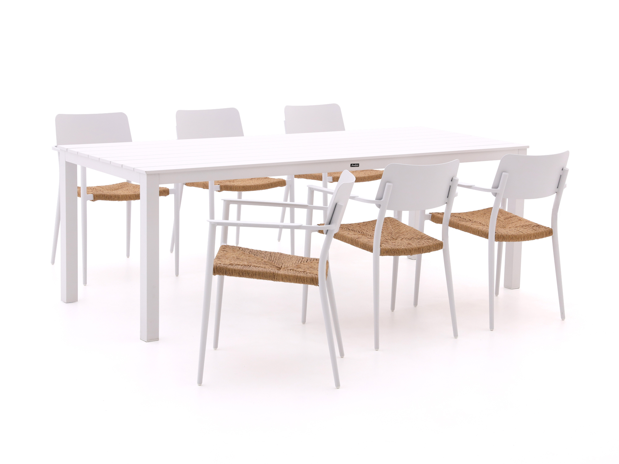 • Aluminium tafel en frames: Dit materiaal is licht en kan niet roesten, zodat je de set makkelijk verplaatst en hij het hele seizoen buiten kan staan.