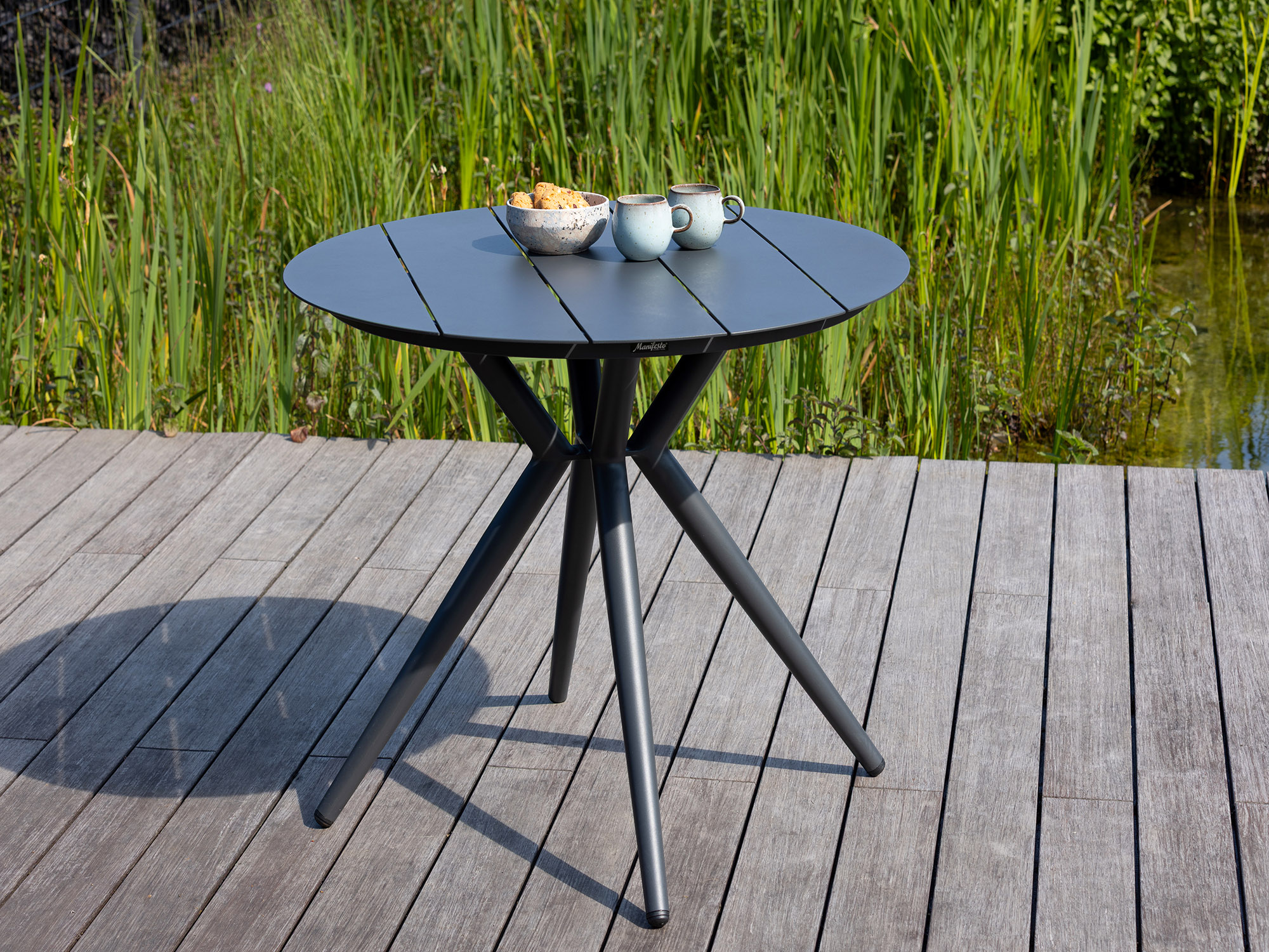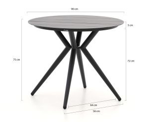 Stijlvol en compact: De tafel met een diameter van 90 cm is perfect voor kleinere buitenruimtes, zonder in te boeten op stijl of functionaliteit.