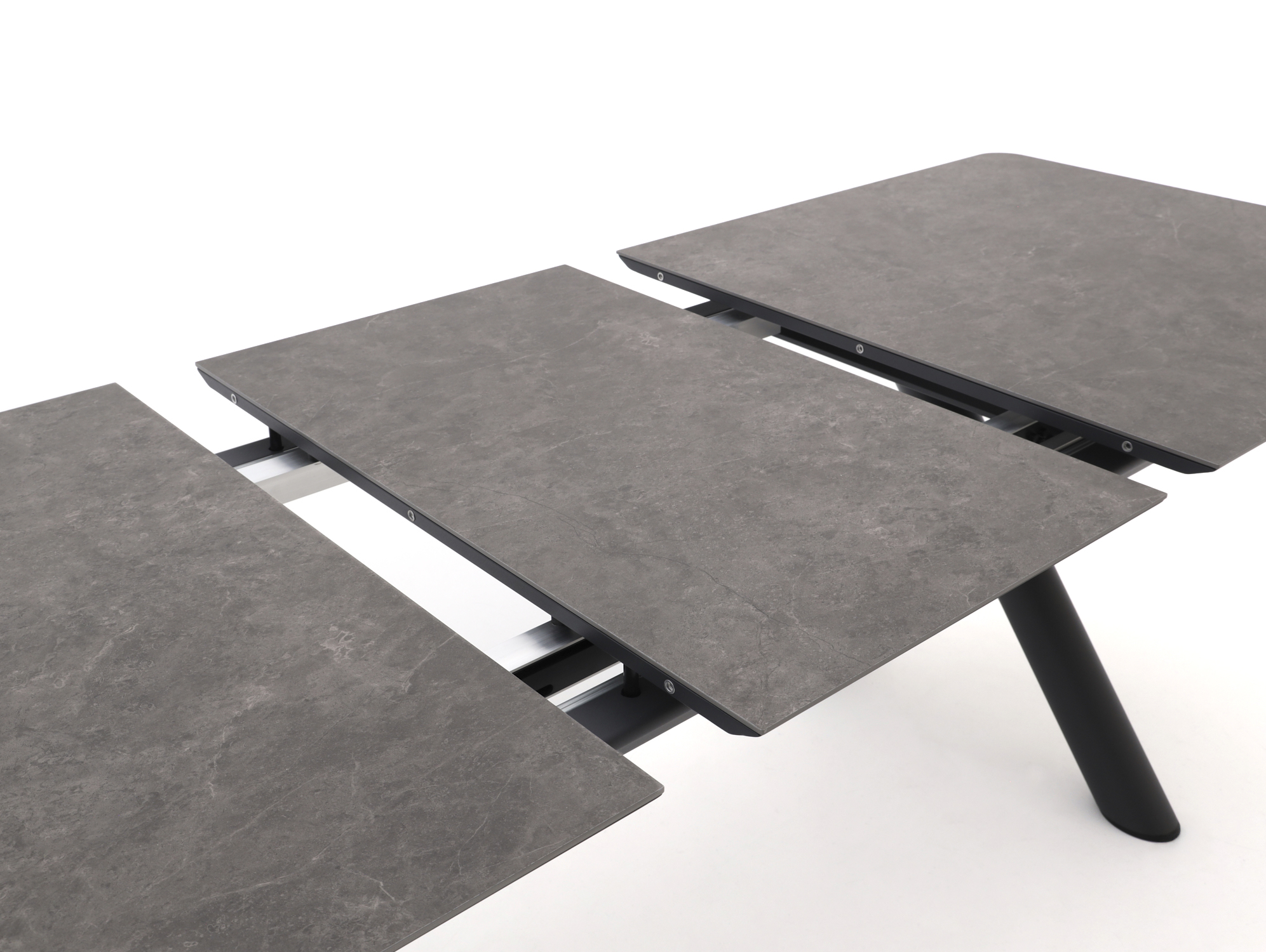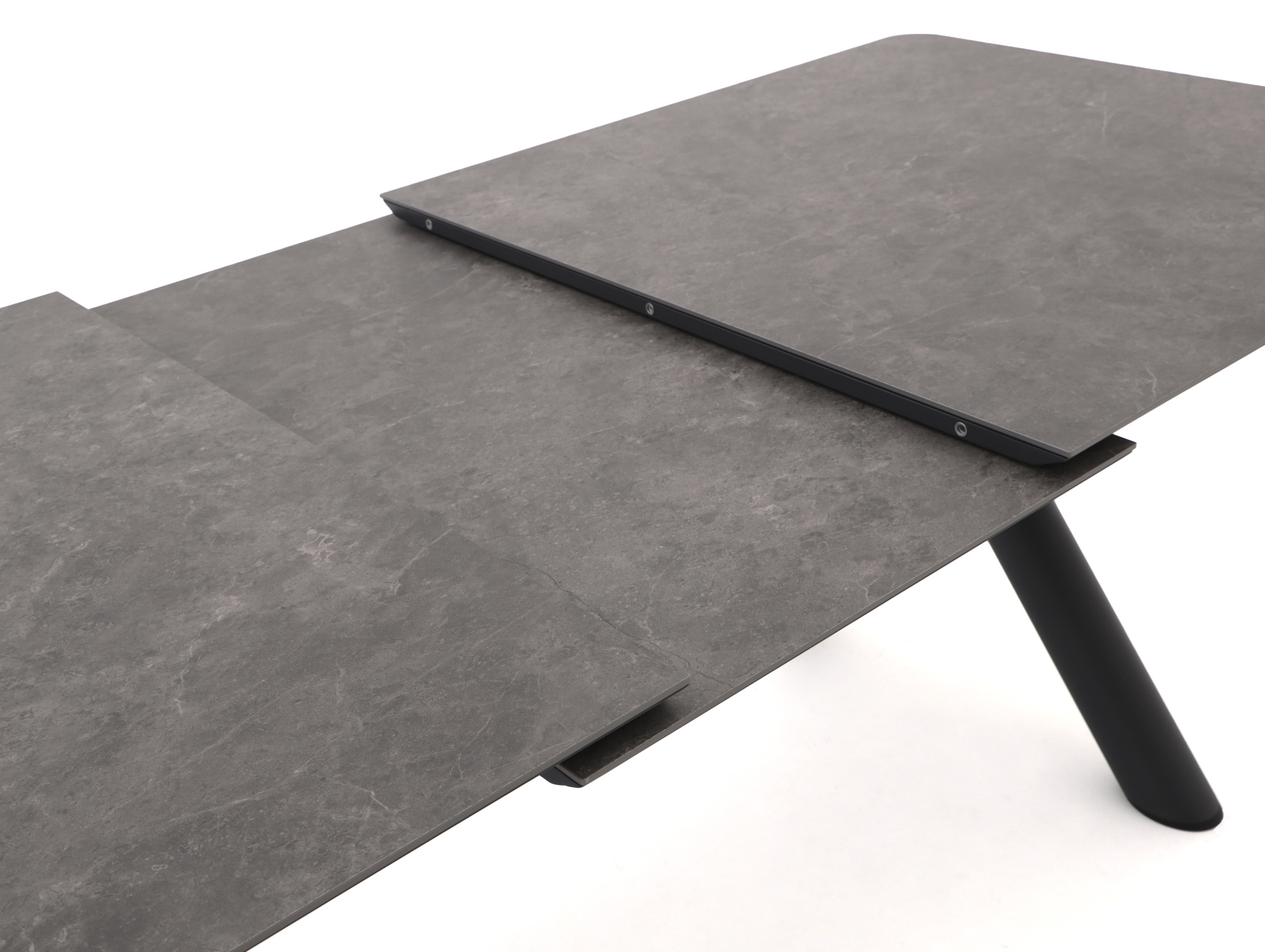 De Bellagio Citadella is een uitschuifbare dining tuintafel voor wie graag afwisselt tussen een knusse maaltijd en uitgebreid eten met meer mensen. De tafel is 100 cm breed, 76 cm hoog en verleng je eenvoudig van 200 naar 260 cm, handig als er spontaan iemand mee eet. Het grijze Sintered Stone tafelblad is sterk en krasbestendig, zodat je zonder zorgen borden en schalen neerzet. Het aluminium onderstel in dezelfde grijze kleur is licht van gewicht en kan niet roesten, dus je tilt de tafel makkelijker wat op als je je terras anders wilt indelen. Dankzij de steldoppen onder de poten staat de tafel stabiel, ook als je tegels niet overal helemaal gelijk liggen.