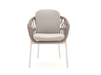 Ben je op zoek naar een stijlvolle en comfortabele stoel voor je tuin? De Bellagio Cupello dining tuinstoel is een uitstekende keuze! Deze stoel is perfect voor gezellige diners in de buitenlucht. Het strakke ontwerp in wit en ecru geeft je tuin een frisse uitstraling, terwijl het aluminium frame zorgt voor een stevige en duurzame basis. De zitting van rope vormt zich naar je lichaam, wat zorgt voor een heerlijk zitcomfort, zelfs als je wat langer aan tafel zit. En met de bijgeleverde bruine kussens zit je altijd lekker zacht. Zet deze stoel aan je eettafel en geniet van lange zomeravonden met vrienden en familie!