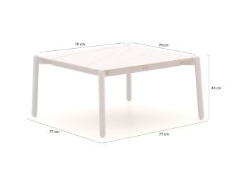 De Bellagio Cupello lounge tuintafel is een stijlvolle toevoeging aan je tuinset. Met zijn strakke, vierkante vorm en het elegante witte sintered stone tafelblad, straalt deze tafel een moderne en verfijnde uitstraling uit. Het aluminium onderstel is niet alleen onderhoudsarm, maar ook licht van gewicht, waardoor je de tafel eenvoudig kunt verplaatsen. Het sintered stone blad is krasbestendig en bestand tegen verschillende weersomstandigheden, ideaal voor buitengebruik. Deze loungetafel is perfect om je kopje koffie of een goed boek op te leggen terwijl je geniet van de zon in je tuin. Zet je favoriete plant erop en je hebt meteen een gezellige hoek gecreëerd!