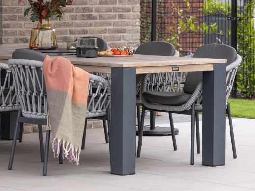 Wil je je dining tuinset extra beschermen tegen water en vuil? Dan kun je een beschermende laag aanbrengen met onze Kees Smit Multi-surface beschermer voor het aluminium frame en onze Kees Smit Textiel & Rope beschermer voor de rope zitting. Voor het teakhouten blad gebruik je de Kees Smit Teak & Hardhout shield. Zo blijft je dining tuinset langer mooi en hoef je minder vaak schoon te maken. Dat is wel zo fijn!