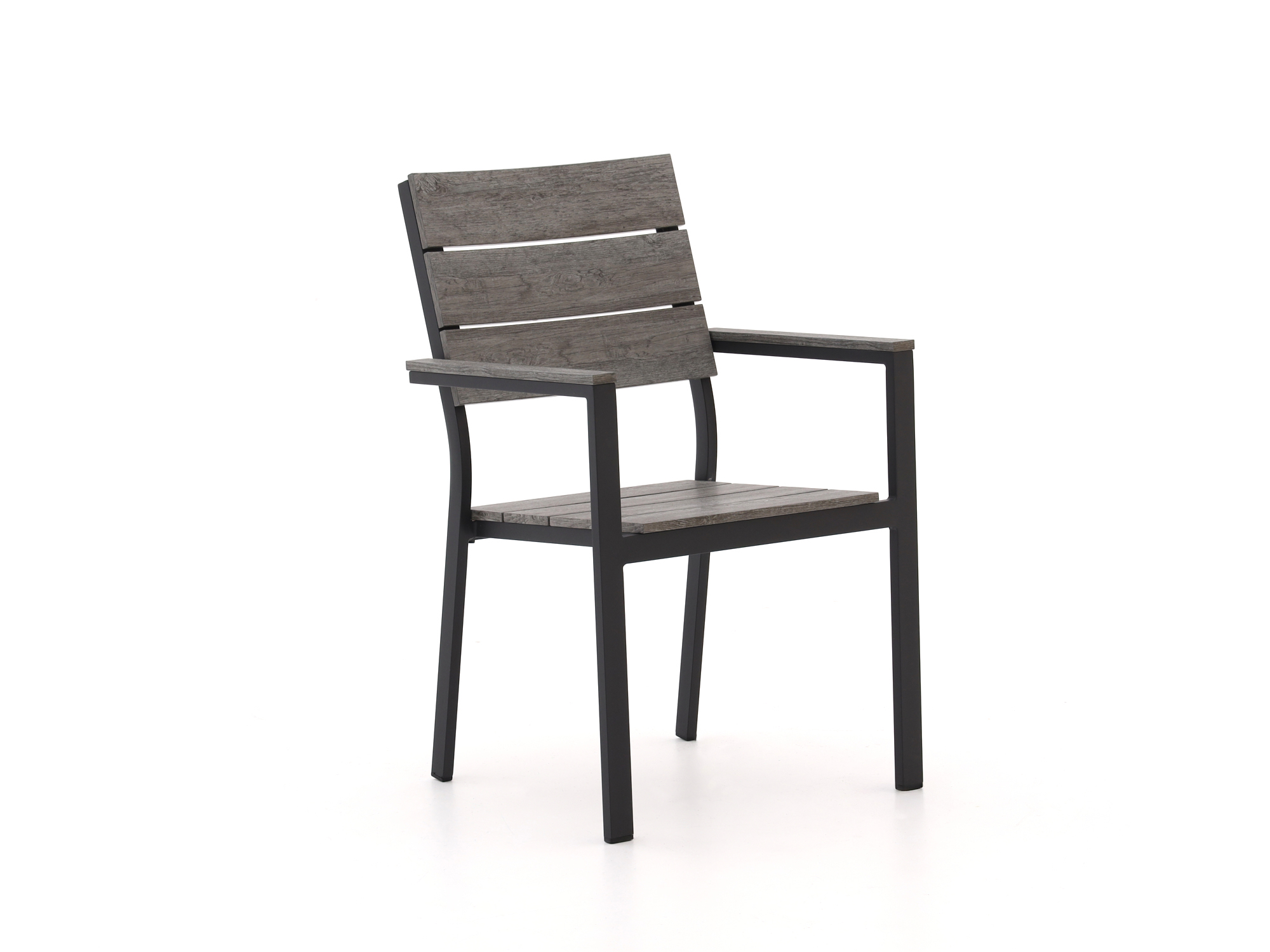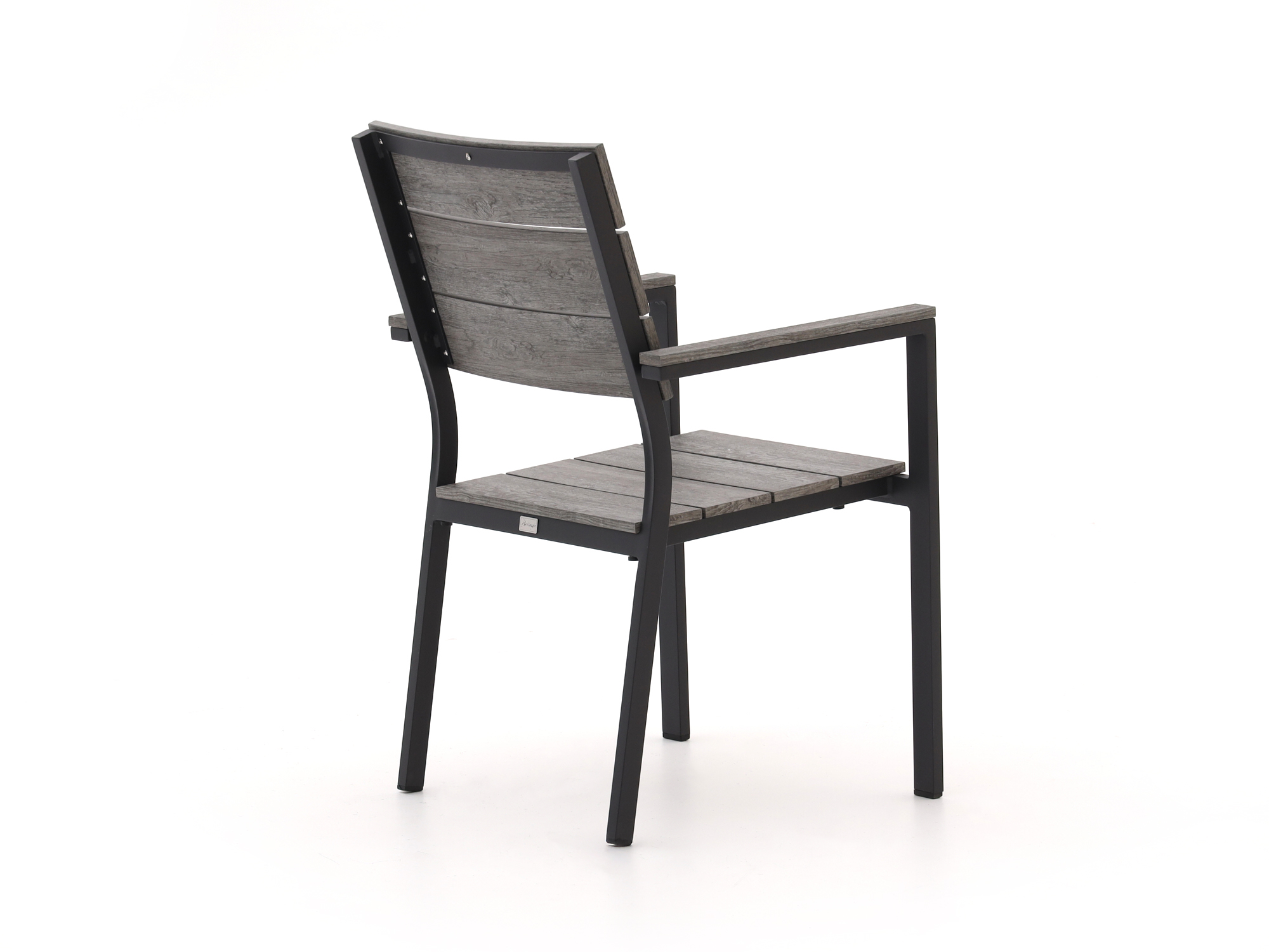 Deze Bellagio Fidenza tuinset is zo’n set waar je met gemak met z’n zessen aan kunt eten, borrelen of gewoon lekker buiten zitten. De combinatie van een lange bank en losse stoelen maakt het net even wat gezelliger en flexibeler dan alleen maar stoelen. Het polywood tafelblad ziet eruit als hout, maar je hoeft het niet te schuren of te lakken. Alles is uitgevoerd in zwart en grijs, dus het past eigenlijk overal wel bij. En als je de stoelen even niet gebruikt, stapel je ze gewoon op elkaar – scheelt weer ruimte.