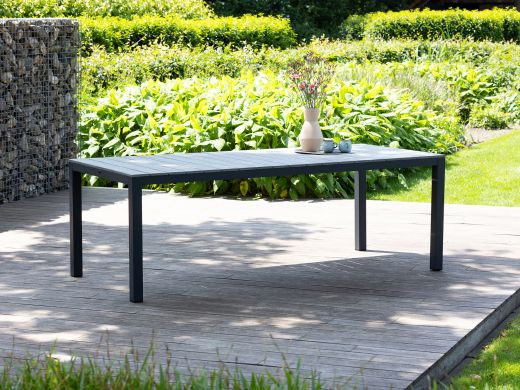 • Lange tafel van 220 cm: Je zet met gemak 6 borden, schalen en drinken op tafel zonder dat het vol aanvoelt.