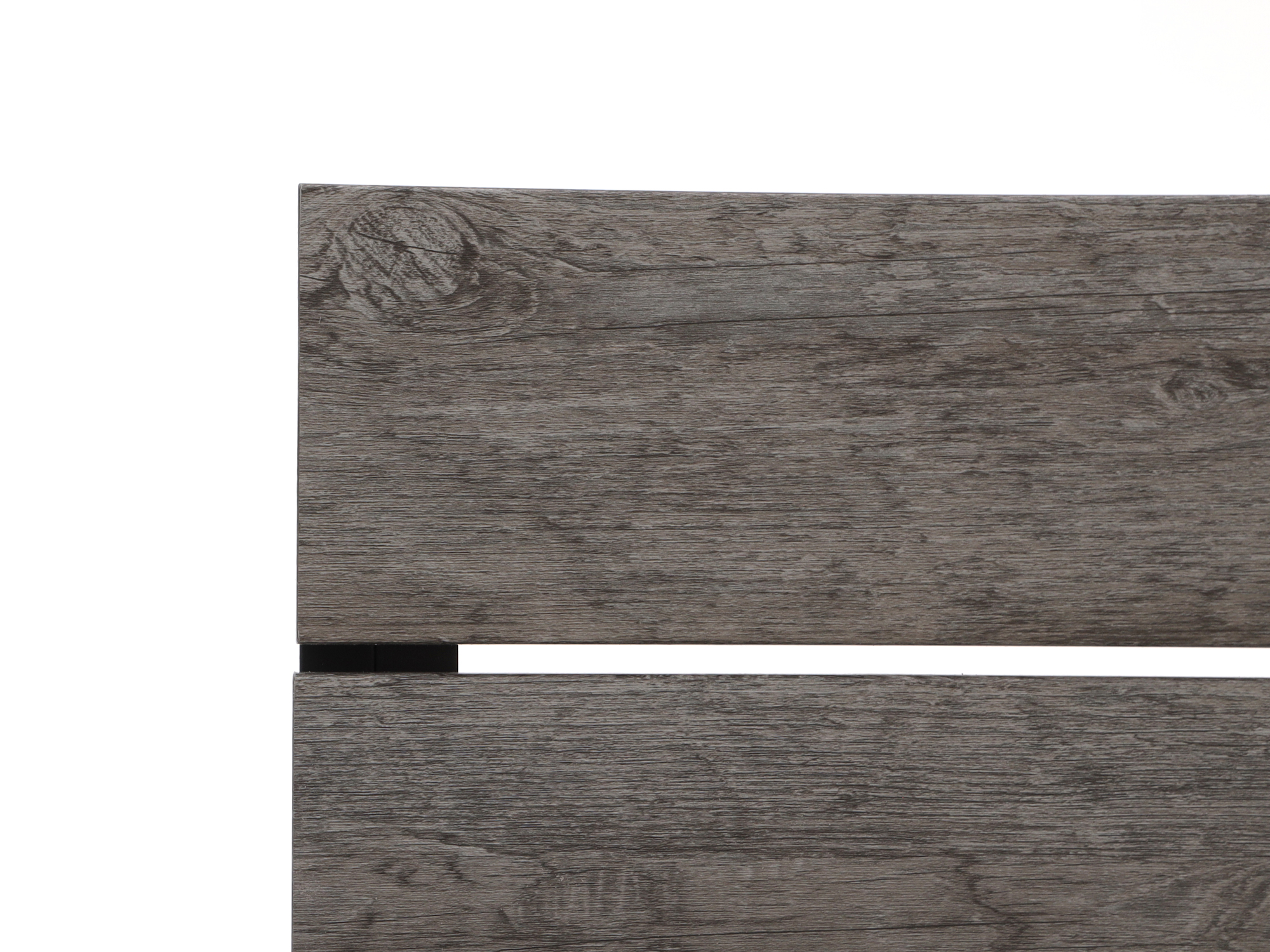 Onderhoudsvriendelijk polywood tafelblad: Het blad lijkt op hout, maar je hoeft het niet te behandelen. Even een doekje erover en klaar.