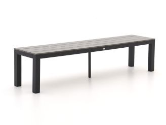 Deze Bellagio Fidenza picknickset is zo’n set waar je met z’n zessen makkelijk aan kunt schuiven, of je nu een snelle lunch doet of juist lang blijft natafelen. Het blad en de zittingen zijn gemaakt van polywood in een grijze houtlook, dus je hebt wel de uitstraling van hout maar niet het gedoe van schuren of lakken. Het onderstel is van zwart aluminium, dat kan gewoon buiten blijven staan zonder dat je je zorgen hoeft te maken over roest. Alles bij elkaar is het een stevige, onderhoudsvriendelijke set waar je niet snel op uitgekeken raakt. En met die rechte vorm past hij ook makkelijk in de meeste tuinen.