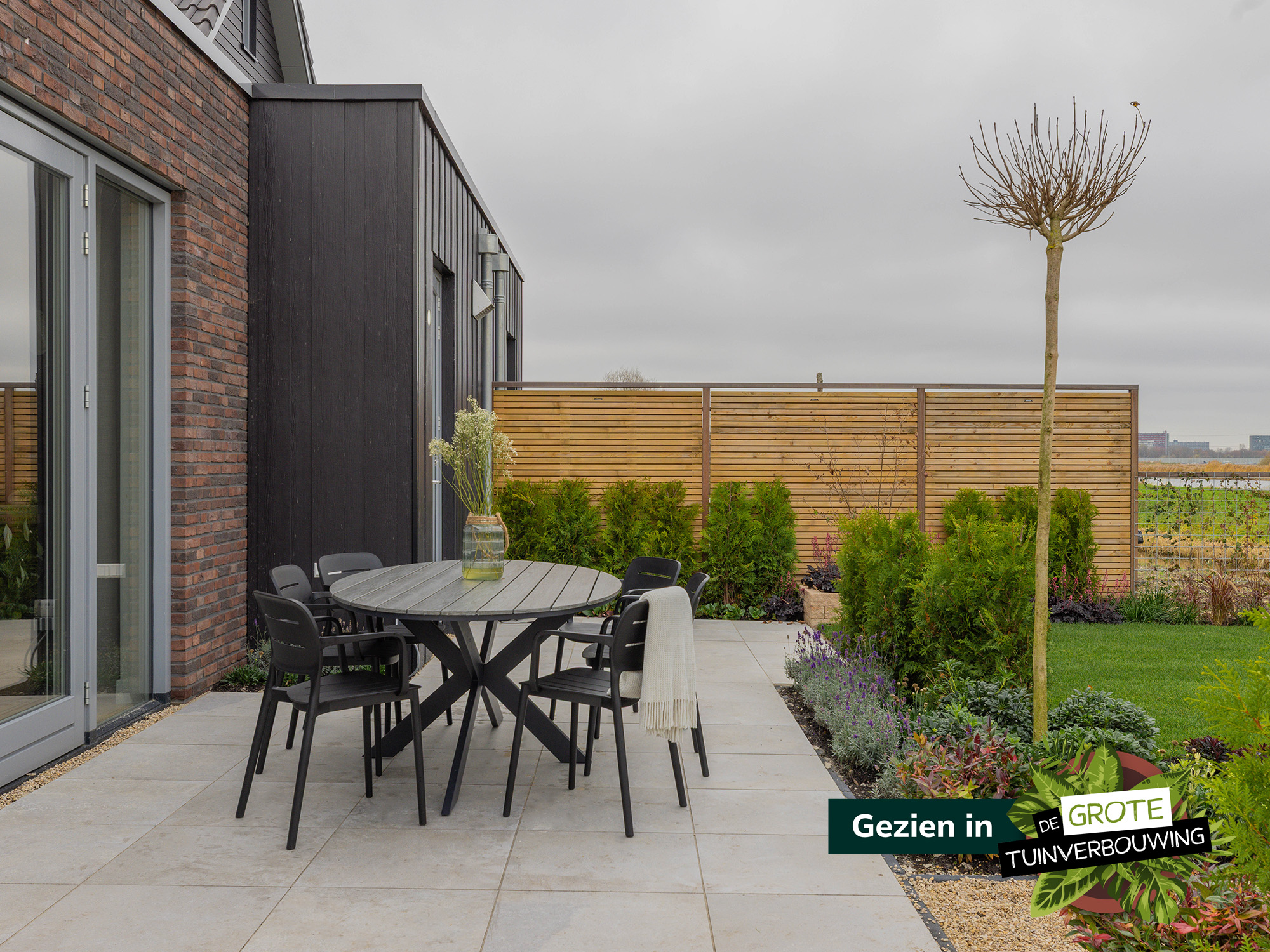 Mooie tuintafel met een mooie uitstraling staat erg mooi op ons nieuwe terras