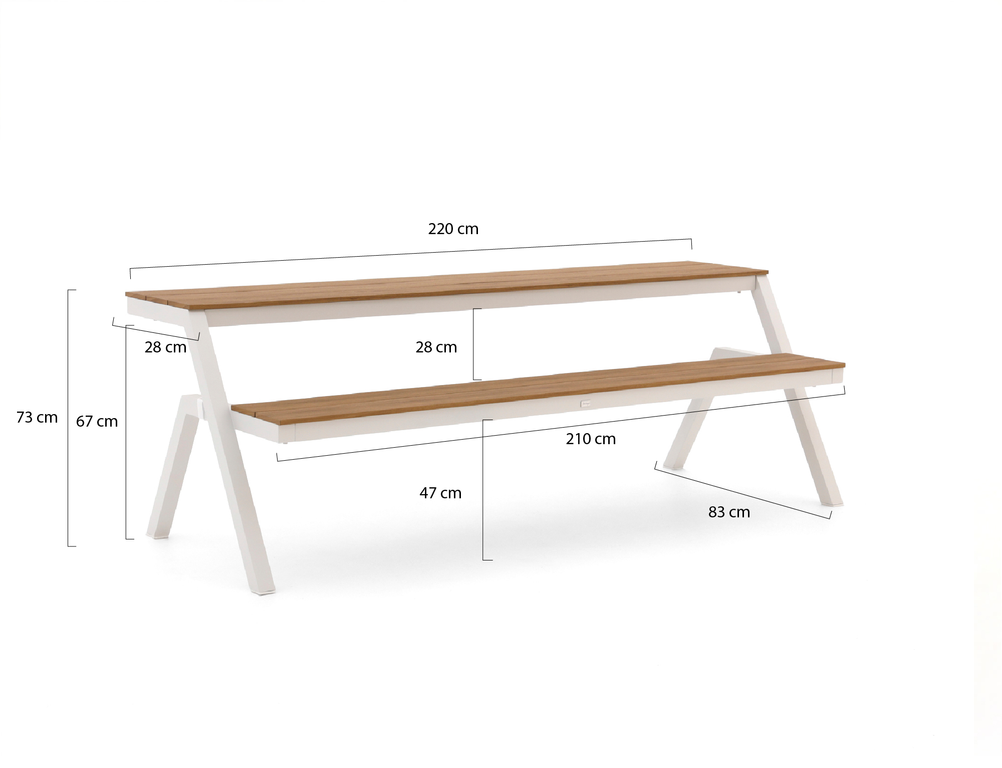 Bellagio Fidenza picknicktafel balkon 220x85x75cm   + 0,-