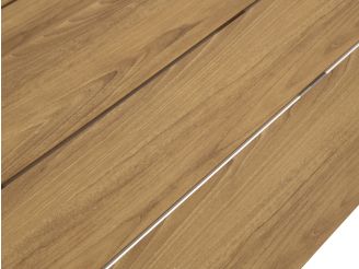 • Kunststof in houtlook: Het blad is water en vuilafstotend, dus een omgevallen glas of regenbui veeg je zo weer weg.