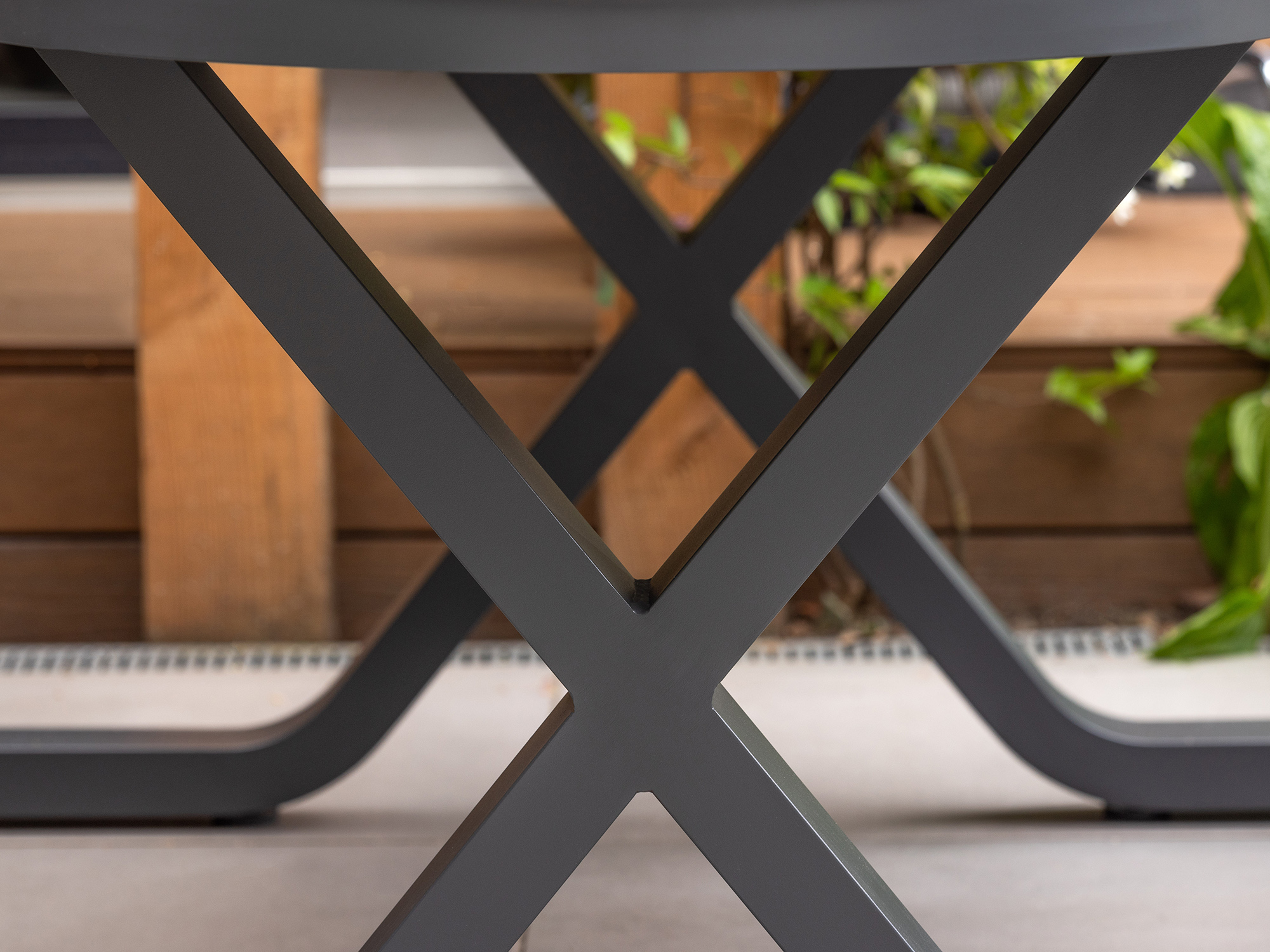 Aluminium onderstel: Dit materiaal kan niet roesten en is onderhoudsarm. Bovendien is het licht van gewicht, waardoor je de tafel eenvoudig kunt verplaatsen.