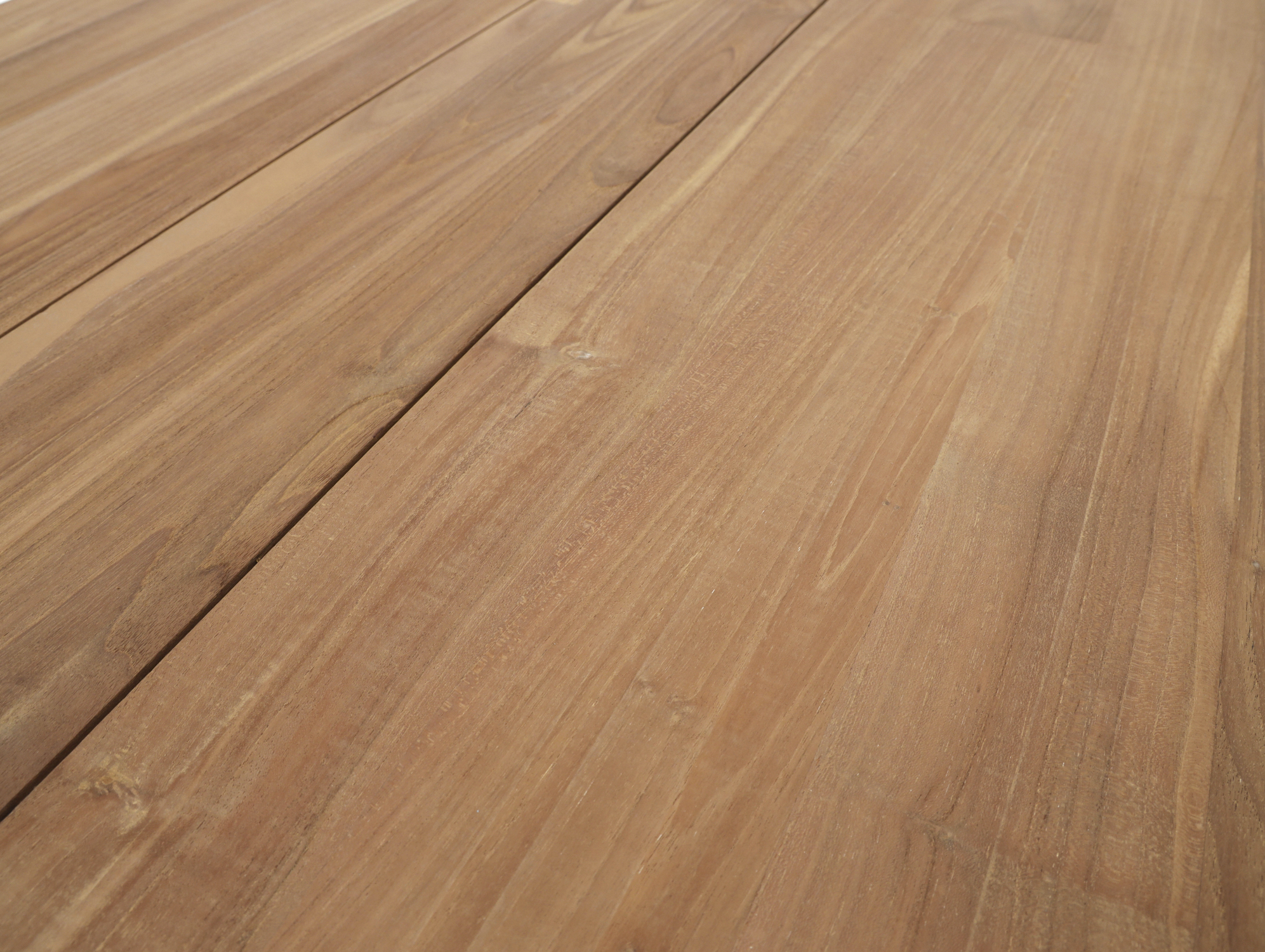 • Teakhouten blad in natuurlijke kleur: Dit sterke hout kan gewoon buiten blijven staan en krijgt met de tijd een rustige, natuurlijke look.