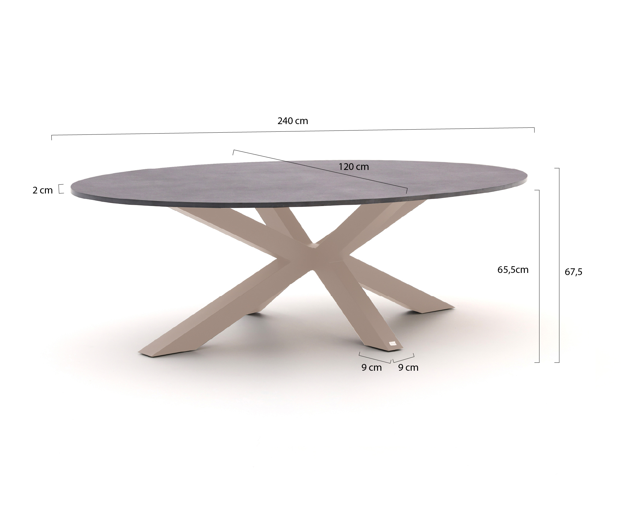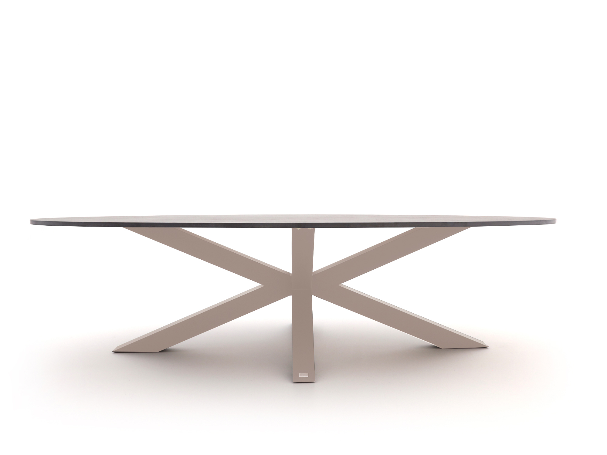 De Bellagio Induno Ellips low dining tuintafel is een stijlvolle toevoeging aan je tuin die zowel praktisch als elegant is. Met zijn ovale vorm biedt deze tafel een gezellige en ruimtelijke uitstraling, perfect voor lange avonden met vrienden en familie. Het Dekton Bromo tafelblad in de kleur Camel Sand is niet alleen een lust voor het oog, maar ook supersterk en onderhoudsvrij. Deze low dining tafel zit qua hoogte tussen een loungetafel en een traditionele diningtafel in, waardoor je comfortabel kunt ontspannen terwijl je dineert. Ideaal voor een relaxte zomeravond in de tuin!