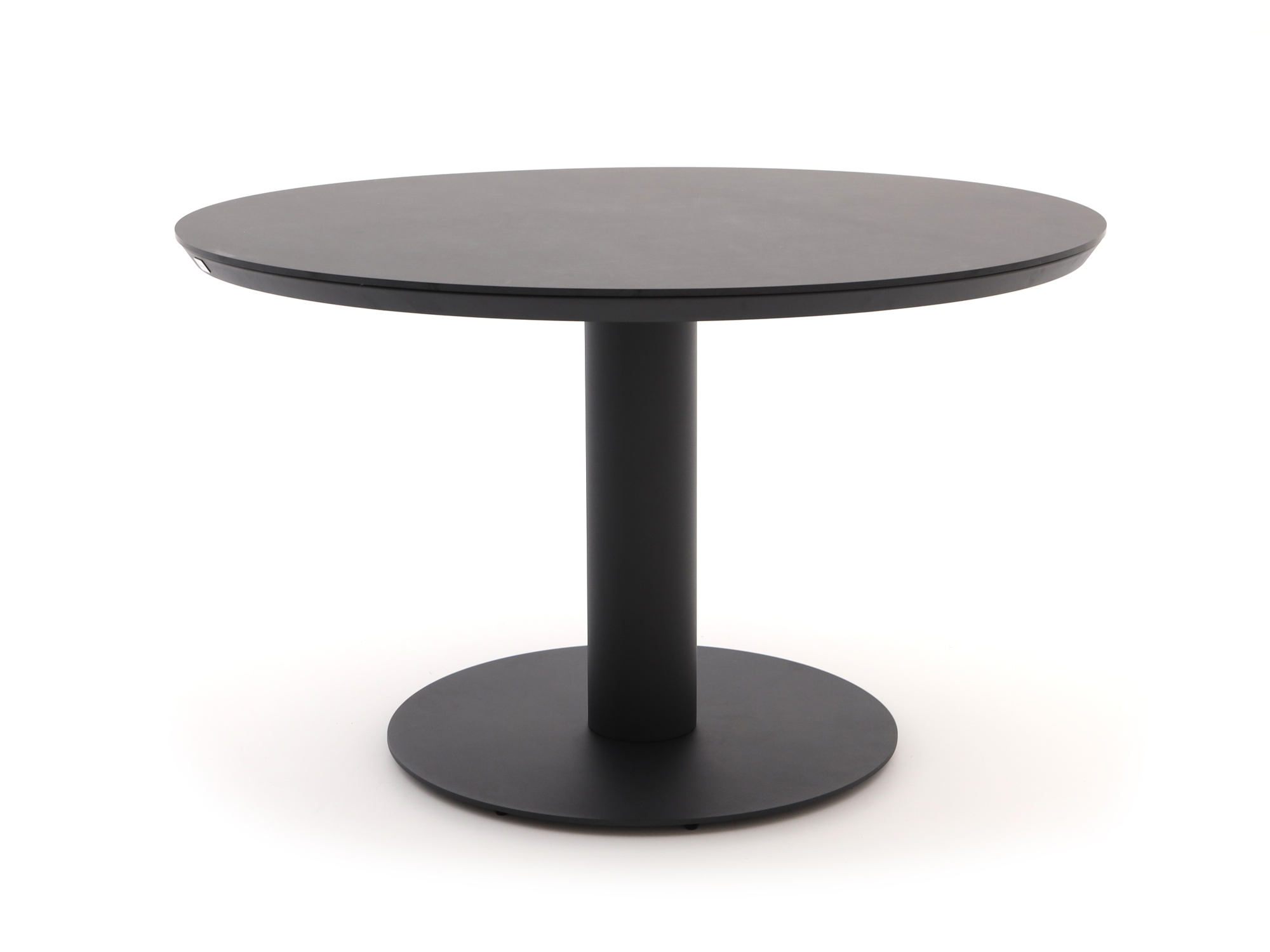 De Bellagio La Fonte dining tuintafel is een ronde tuintafel van 120 cm voor 4 personen, ideaal als je compact wilt zitten maar wel lekker de ruimte wilt hebben voor borden en schalen. Het grijze HPL kunststof tafelblad en het grijze RVS onderstel zijn stevig en weerbestendig, zodat de tafel het hele seizoen buiten kan blijven staan. Door de ronde vorm zit iedereen makkelijk met elkaar aan tafel, handig voor lange avonden tafelen of een spelletje met het gezin. Met een hoogte van 73 cm past hij goed bij standaard tuinstoelen. Let er wel op dat je bij hete pannen onderzetters gebruikt, zo blijft het blad langer mooi.