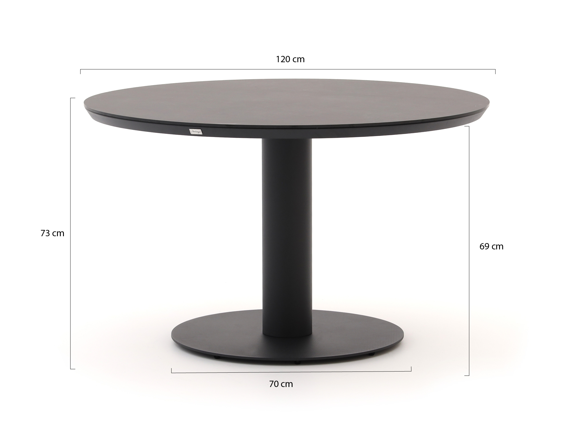 • Ronde tafel van 120 cm: Je zit met 4 personen gezellig tegenover elkaar zonder scherpe hoeken waar je je been aan stoot.