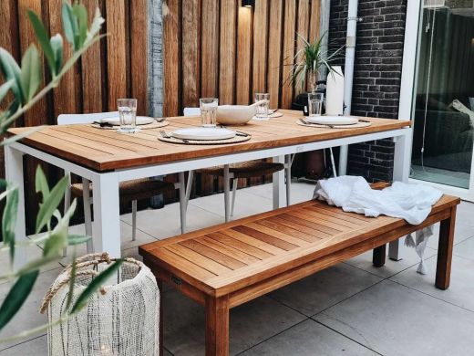 Als je tuintafel vies is geworden, maak je deze eenvoudig schoon. Gebruik voor het teakhouten blad een emmer water met wat soda of keukenzout en een zachte doek om vuil te verwijderen. Dit is meestal voldoende om stof en aanslag weg te halen. Wij raden aan om je tuintafel minstens twee keer per jaar grondig schoon te maken met een speciale reiniger. Voor het beste resultaat gebruik je dan onze Kees Smit Teak & Hardhout reiniger. Let op: gebruik géén hogedrukreiniger. Dit lijkt handig, maar kan het hout beschadigen.