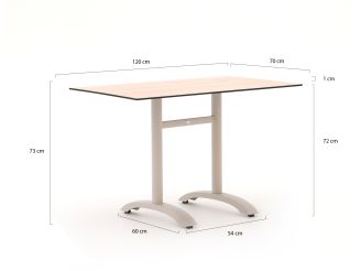 Bellagio Canzo tafelblad 120x70cm t.b.v. inklapbaar pootstel (dubbel)   + 0,-