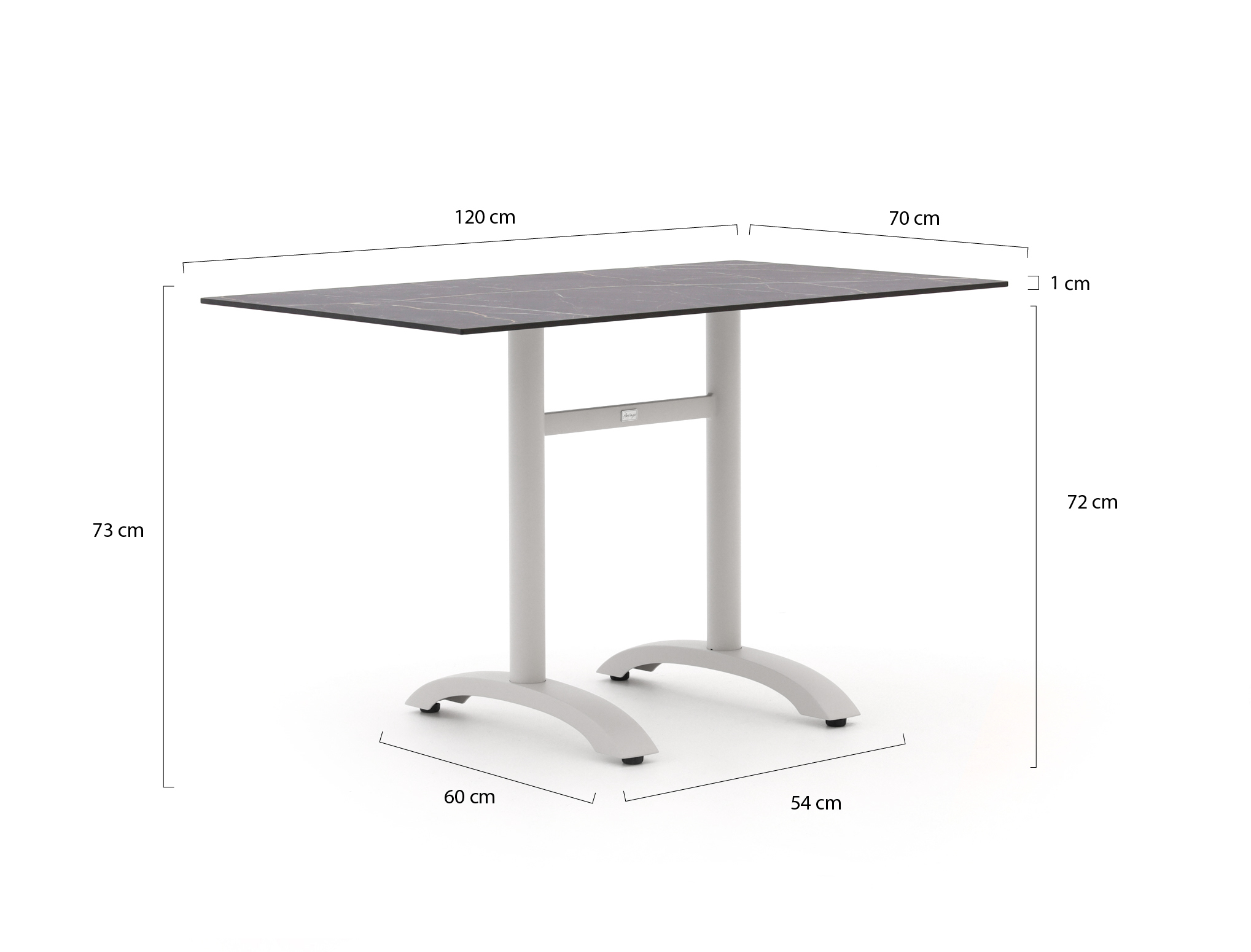 Bellagio tafelblad 120x70cm t.b.v. Canzo/Lisio/Orta pootstel (dubbel)   + 0,-