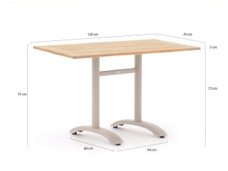• Rechthoekig formaat 120x70 cm: schuif je eenvoudig tegen een muur of in een smalle hoek, handig als je terras of balkon wat smaller is.