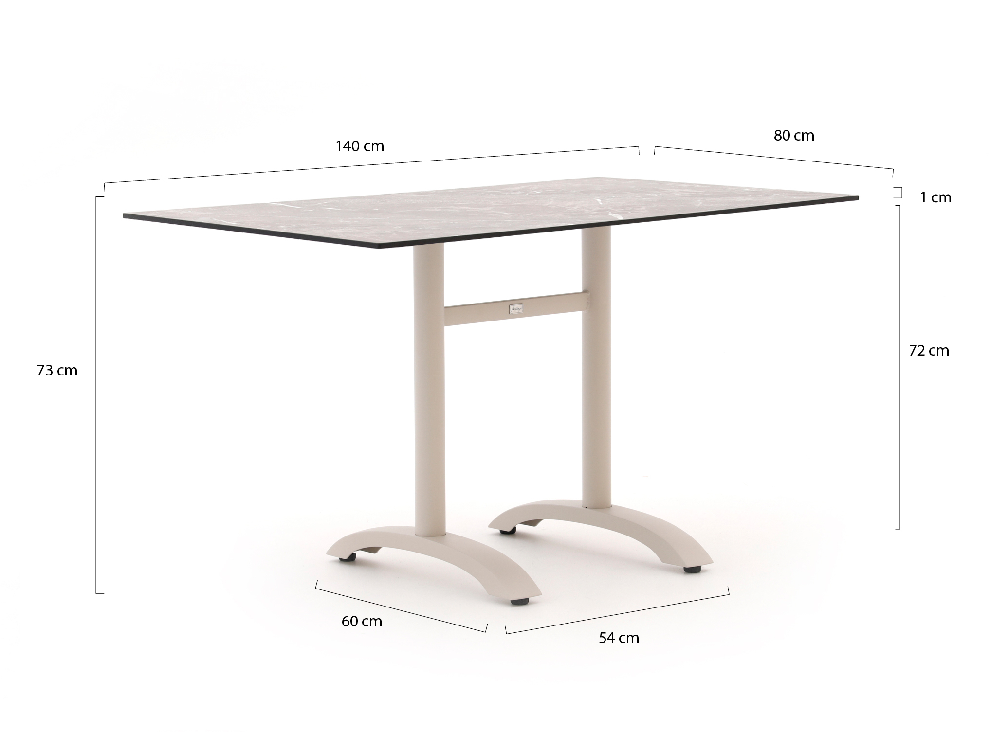 Bellagio tafelblad 140x80cm t.b.v. Canzo/Lisio/Orta pootstel (dubbel)   + 0,-