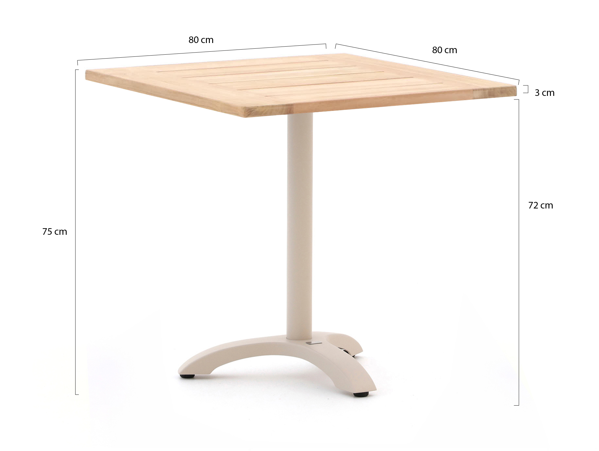 • Compact formaat 80x80 cm: je zit gezellig met 2 personen, zonder dat de tafel je hele terras inneemt.