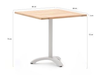 • Voor 2 personen: het 80x80 cm blad geeft genoeg ruimte voor twee borden en schalen, zonder dat de tafel log oogt.