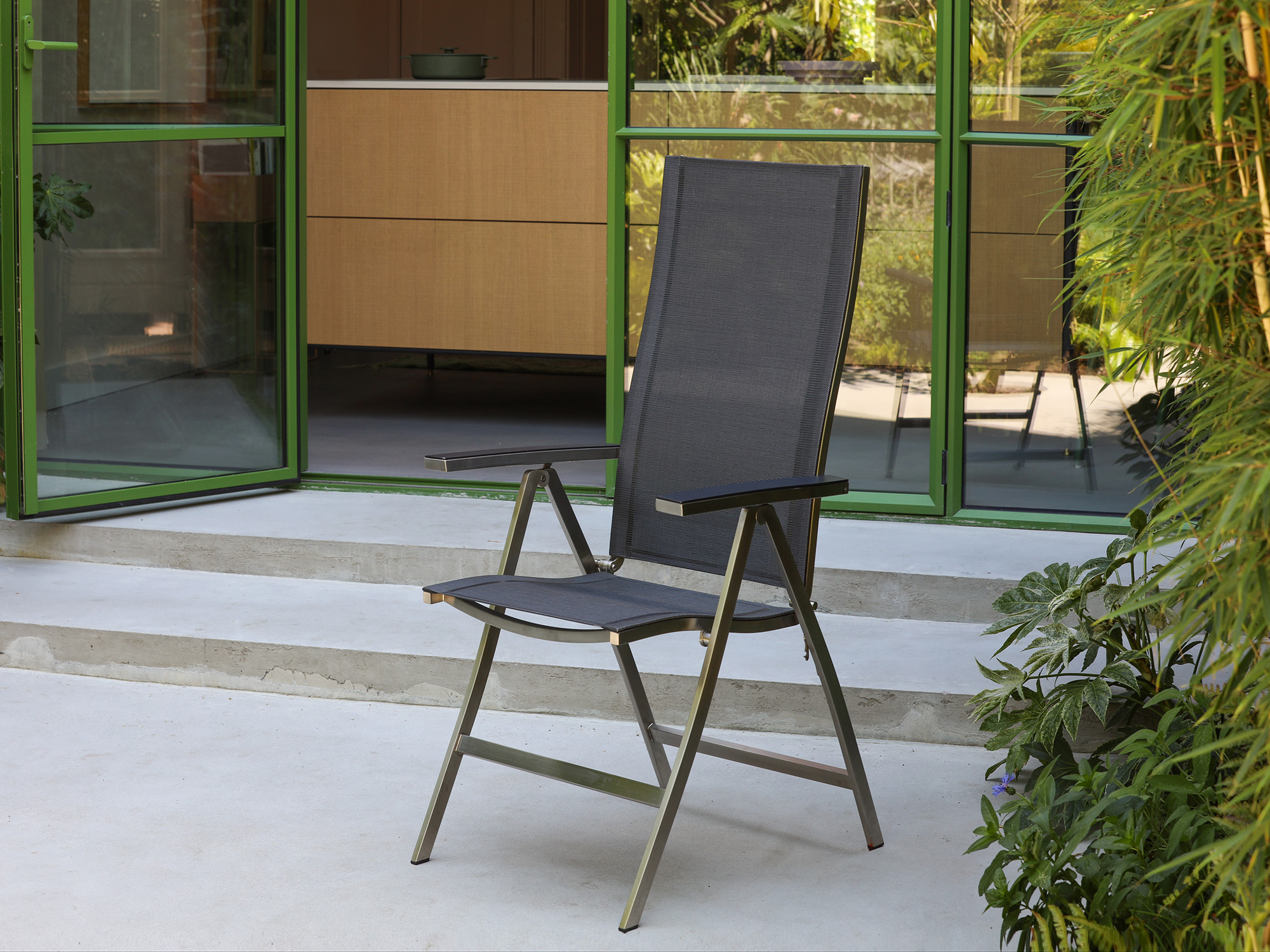 Textileen zitting: Vormt zich naar je lichaam, waardoor je ook bij lange diners comfortabel blijft zitten.
