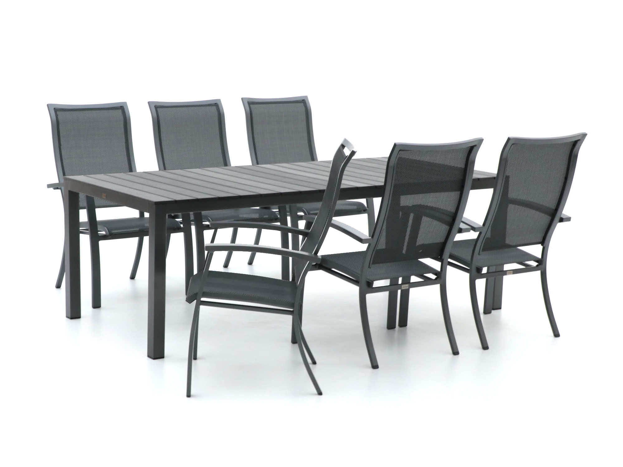 Een zonnige dag, een goed gezelschap en een heerlijke maaltijd in de buitenlucht. Met de Bellagio Lugo/Fidenza 220cm dining tuinset wordt dat plaatje werkelijkheid. Deze 7-delige set in stijlvol Royal Grey biedt plek aan zes personen en is een echte blikvanger in je tuin. De combinatie van een robuust aluminium frame en een onderhoudsarm polywood tafelblad zorgt ervoor dat je jarenlang plezier hebt zonder gedoe. En als je klaar bent met tafelen? De stoelen zijn stapelbaar, dus je bergt ze eenvoudig op. Zo houd je ruimte over voor andere tuinavonturen!