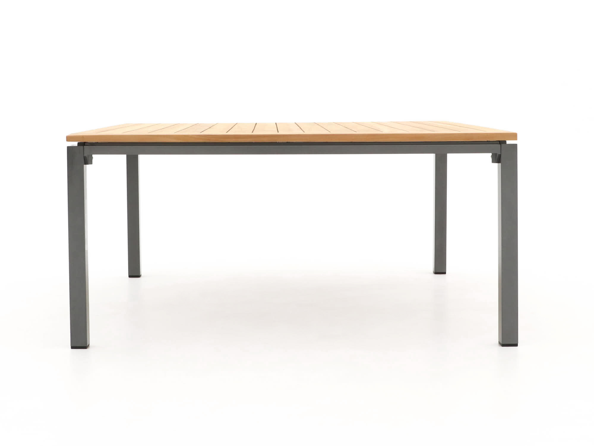 Teakhouten tafelblad en armleuningen: Natural teak krijgt buiten op een natuurlijke manier een mooie, zilvergrijze kleur. Liever de warme, bruine tint behouden? Wij verkopen een kleurbeschermer waarmee je de kleur langer vasthoudt.