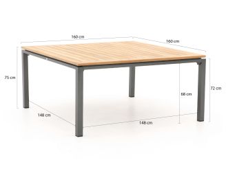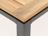 Gezellig tafelen met het hele gezin of vrienden? Met deze set zit iedereen prettig rondom de vierkante tafel, dus je hebt echt contact met elkaar. De stoelen geven een actieve zithouding aan tafel en klappen na het eten eenvoudig naar achter voor een relaxmoment. Het teakhouten blad brengt warmte en sfeer, ook als de zon even weg is. De zwarte frames houden het geheel strak en rustig. Dankzij het ademende zit- en ruggedeelte zit je ook zonder kussen lekker lang comfortabel. Acht plekken, ruim blad: plek voor pannen, spelletjes en verhalen.