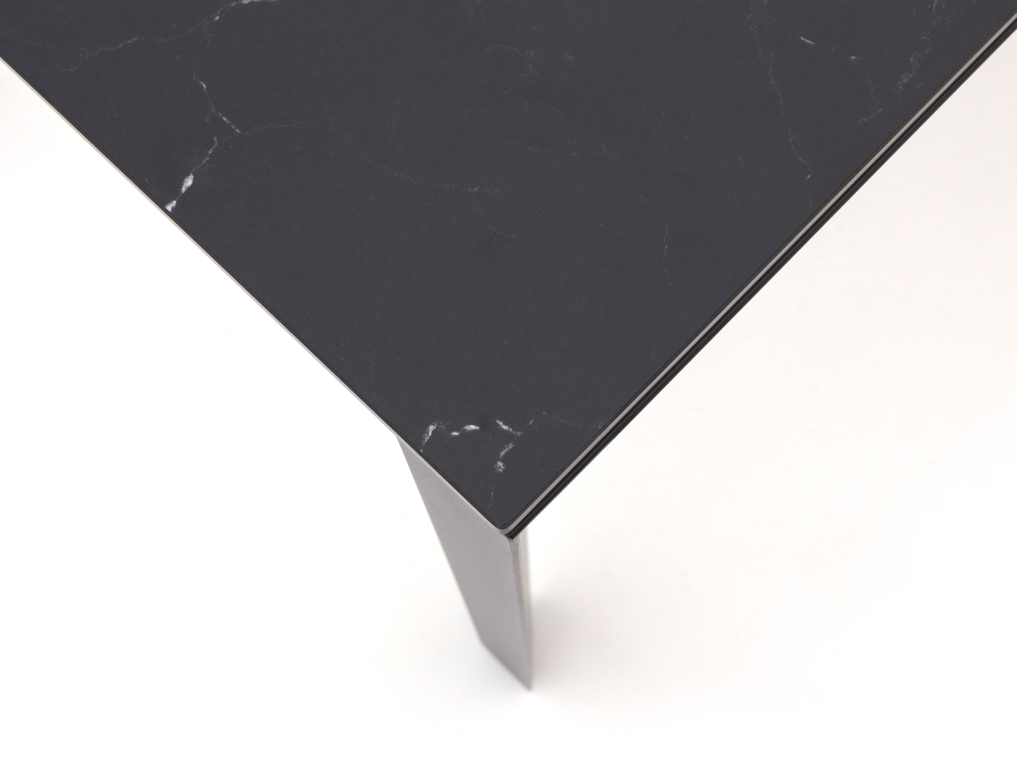 Sintered stone tafelblad: Het stevige, zwarte blad kan tegen een stootje, zodat glazen, pannen en kinderspeelgoed geen probleem zijn.