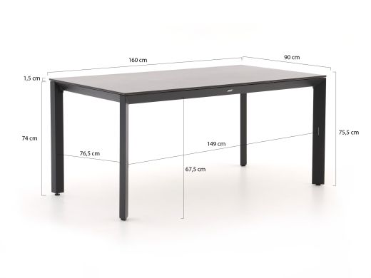 De Bellagio Lugo/Sestino dining tuinset is een moderne, strakke set voor wie graag buiten eet, borrelt en natafelt met z’n vieren. De zwarte aluminium tuintafel van 160 cm combineert mooi met de grijs-zwarte stoelen, waardoor je terras meteen een rustige, luxe uitstraling krijgt. De stoelen hebben een textilene zitting: dat zit comfortabel, ook zonder kussen, en droogt snel na een buitje. Het tafelblad van zwart sintered stone is stevig en krasvast, ideaal als je graag uitgebreid kookt en serveert. Deze set past perfect op een middelgroot terras of in een moderne tuin, waar je ‘m het hele seizoen door intensief gaat gebruiken.
