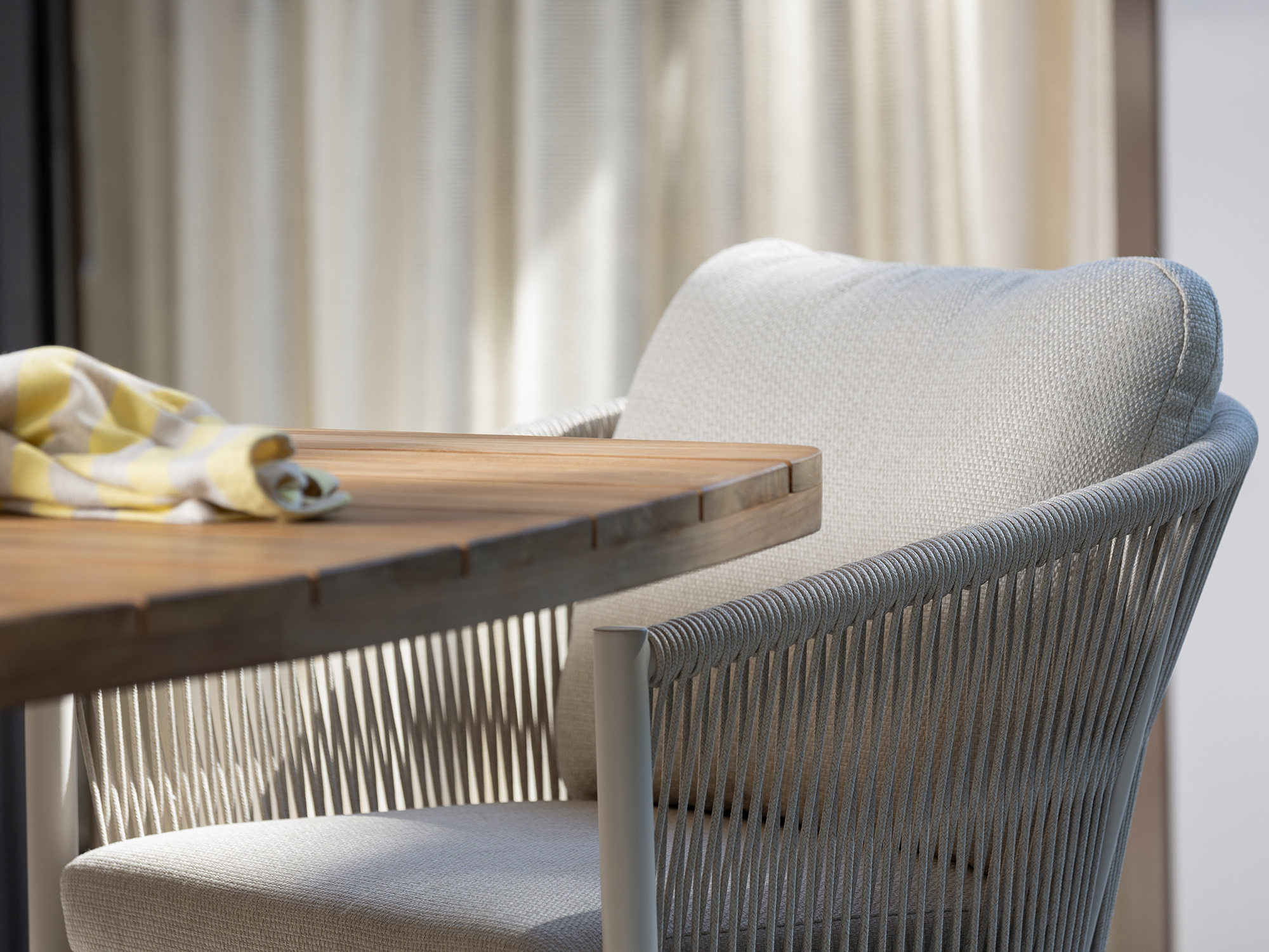 • Rope zitting met kussens: De strak gespannen rope zitting met bijgeleverde kussens zit stevig en comfortabel, ook als je een lange avond blijft hangen.