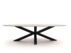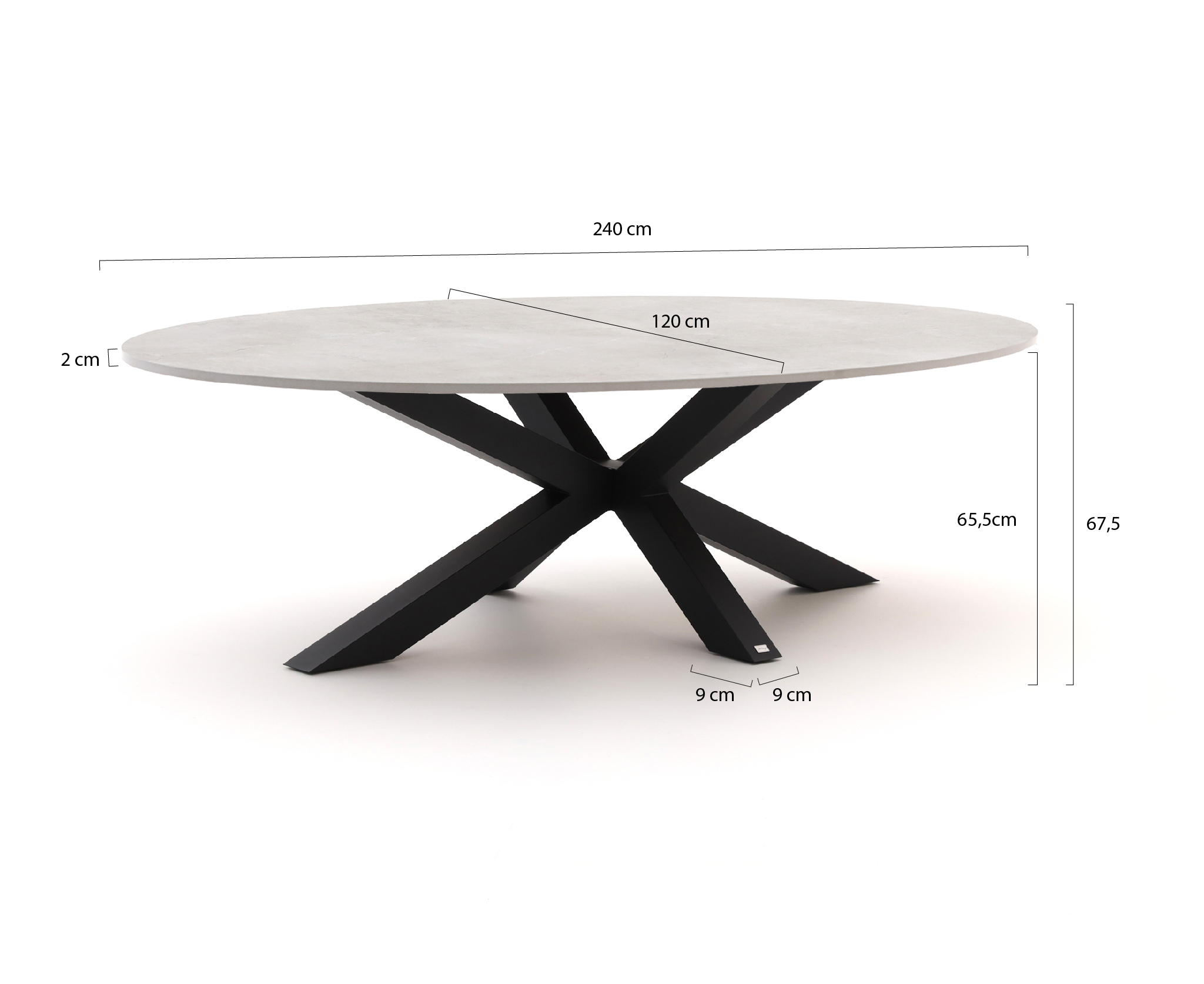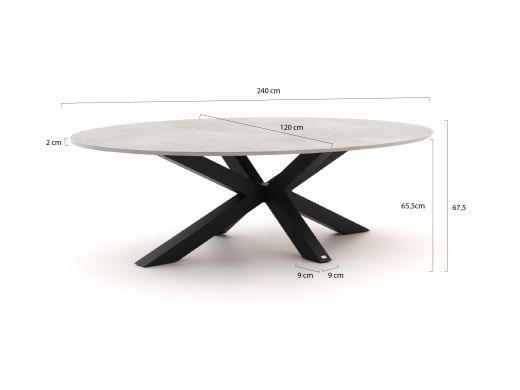 Aluminium frame en onderstel: Het frame en onderstel van de tafel zijn gemaakt van aluminium, wat niet kan doorroesten en onderhoudsarm is. Dit zorgt ervoor dat de tafel stevig staat en bestand is tegen alle weersomstandigheden.