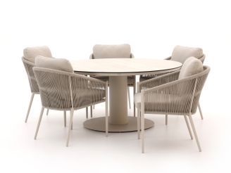 De Bellagio Mineo/La Fonte dining tuinset is een prachtige aanvulling voor elke tuin. Met zijn neutrale tinten en stijlvolle ronde tafel biedt deze set een uitnodigende plek voor gezellige diners met vrienden en familie. De comfortabele wicker stoelen worden geleverd met bijpassende kussens, zodat je urenlang kunt genieten zonder in te leveren op zitcomfort. Het tafelblad van HPL Travertin is niet alleen kras- en vlekbestendig, maar ook onderhoudsarm, wat betekent dat je meer tijd hebt om te ontspannen en minder tijd kwijt bent aan schoonmaken. Een slimme keuze voor wie houdt van gemak en stijl in de tuin!