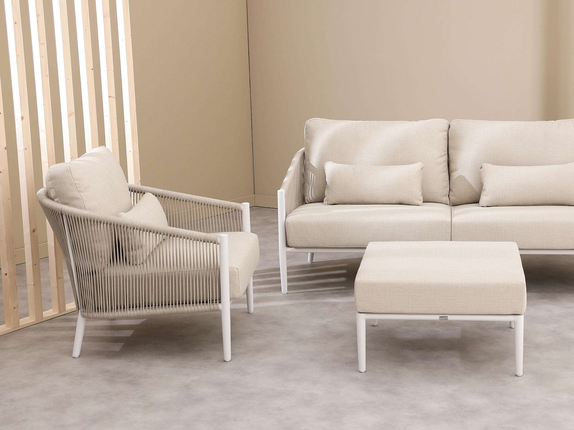 Aluminium frame: Het frame is gemaakt van aluminium, wat betekent dat het niet kan doorroesten en onderhoudsarm is. Zo blijft je meubel er jarenlang goed uitzien.