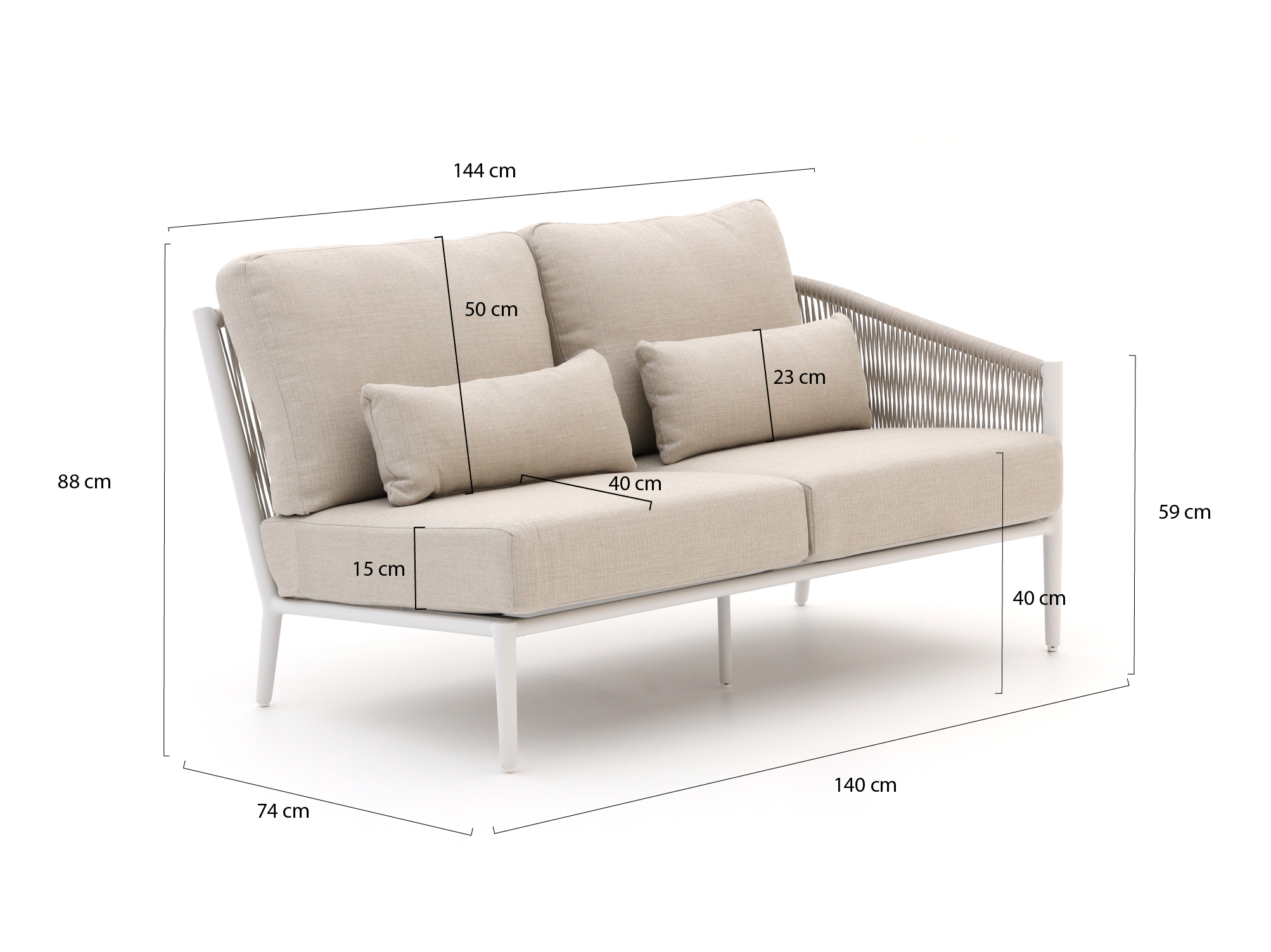 Ruimte voor 2 zitplaatsen: Deze loungemodule biedt comfortabel plaats aan twee personen, ideaal voor een gezellig samenzijn in de tuin.