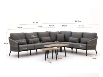 Afmeting: Met een afmeting van 331x237.5 cm biedt deze loungeset voldoende ruimte voor zes personen. De royale afmetingen maken het een comfortabele plek om te ontspannen en te genieten van het buitenleven.
