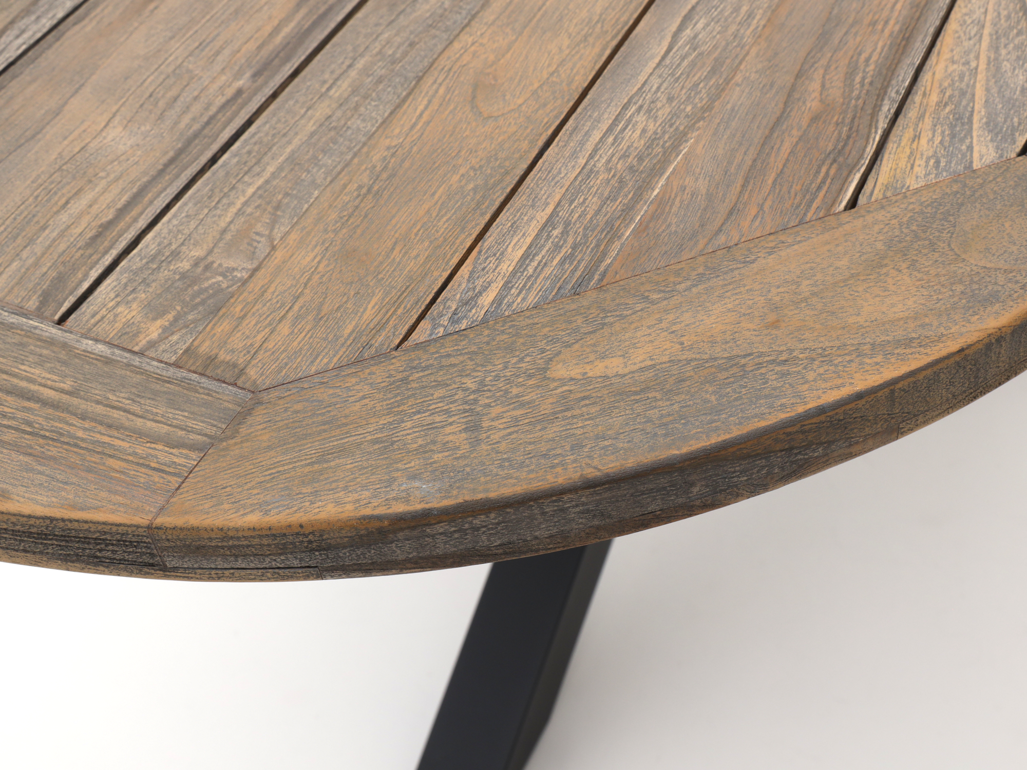Weerbestendig teakhout: Het tafelblad van Old Teak Greywash is niet alleen een lust voor het oog, maar ook bestand tegen weer en wind. Dat betekent jarenlang zorgeloos genieten zonder gedoe.