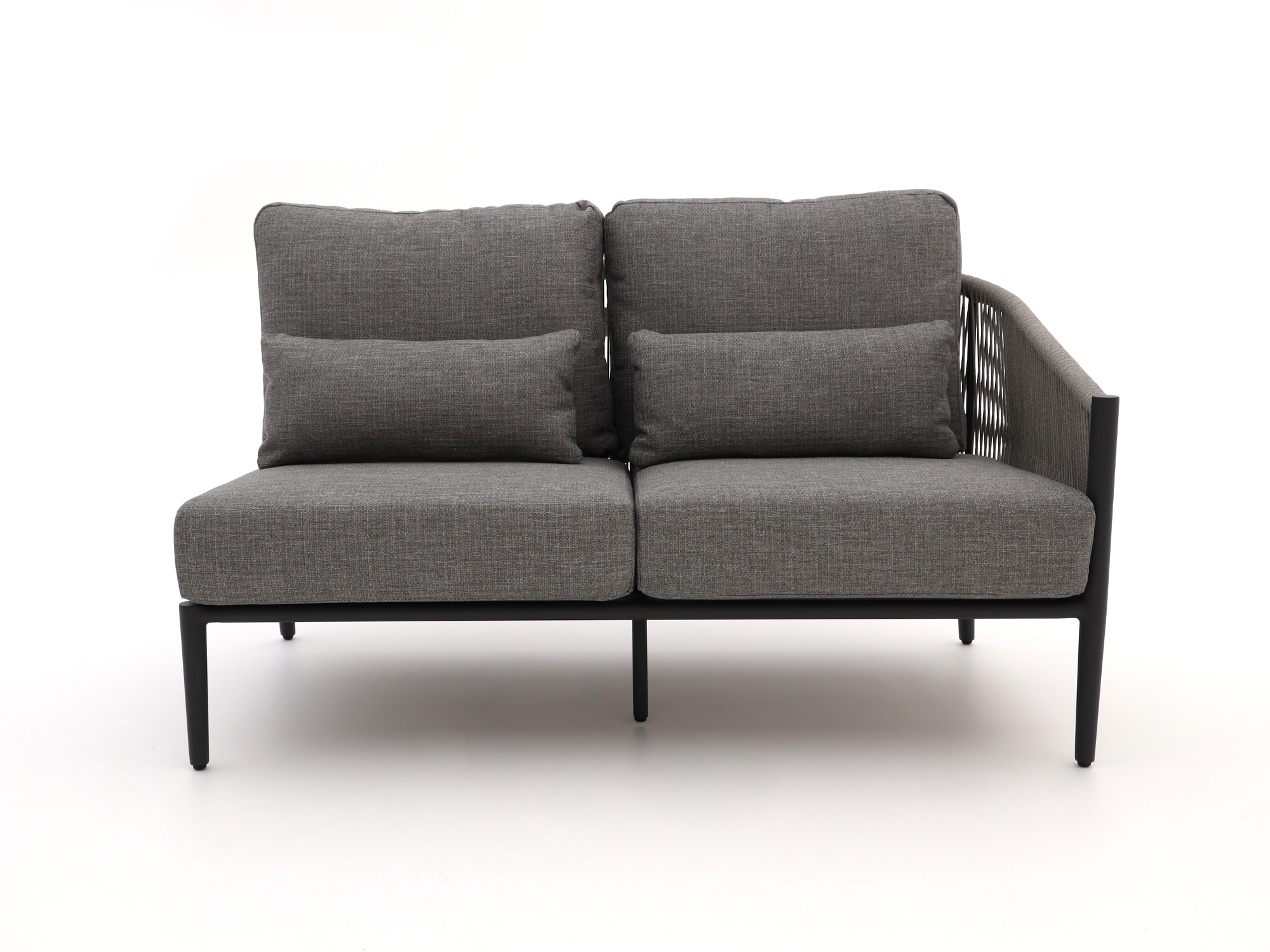 • Hoekopstelling rechts: Je zet de set strak in een hoek, zodat je de ruimte in je tuin optimaal gebruikt en toch veel zitplekken hebt.