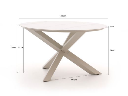 Ronde tafel: Met een diameter van 130 cm biedt de ronde tafel een gezellige setting waar iedereen elkaar goed kan zien. Perfect voor een goed gesprek tijdens het eten.