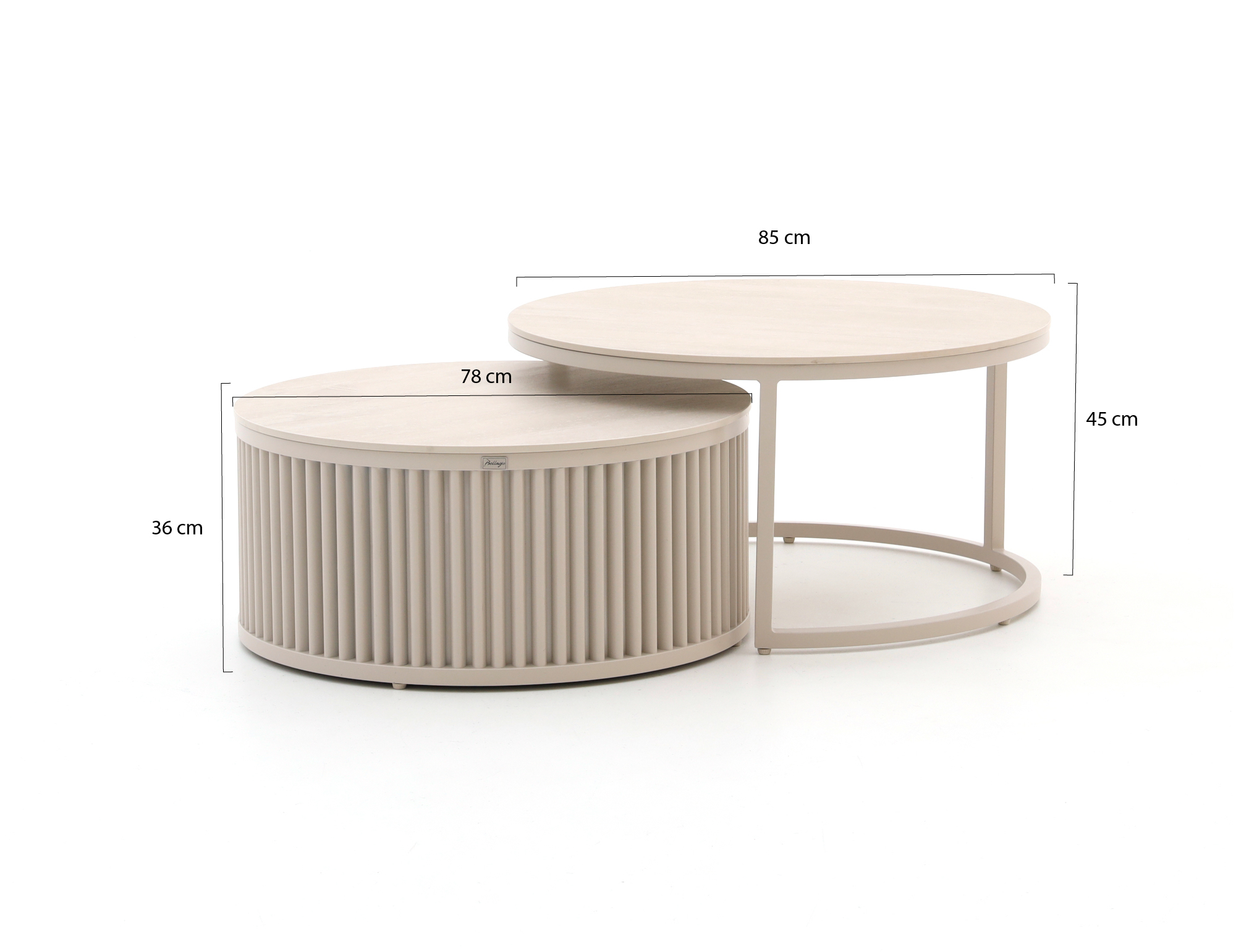 Bellagio Oriago lounge tuintafelset ø85cm(h:45cm)/ø78cm (h:36cm)