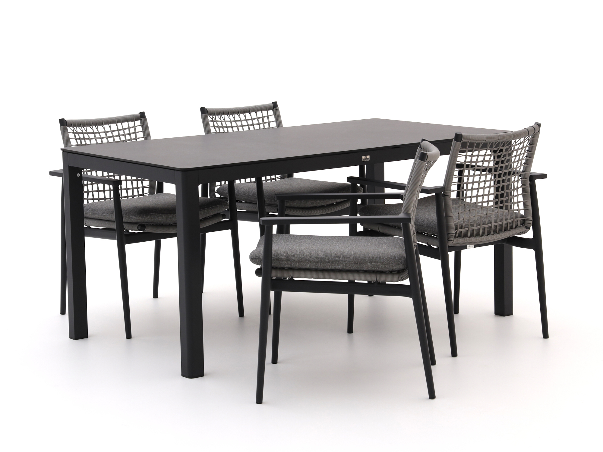 Ben je op zoek naar een tuinset die zowel stijlvol als praktisch is? Dan is de Bellagio Pizzoli/La Fonte dining tuinset precies wat je nodig hebt! Deze set is ideaal voor gezellige diners met vrienden of familie in je tuin. Met zijn strakke zwarte kleur en moderne uitstraling past hij perfect in elke buitenruimte. De stoelen zijn voorzien van comfortabele kussens in een lichte antracietkleur, zodat je urenlang kunt genieten van je maaltijd. Bovendien is de set stapelbaar, wat betekent dat je hem eenvoudig kunt opbergen wanneer je hem niet gebruikt. Tijd om je tuin om te toveren tot een gezellige eetplek!