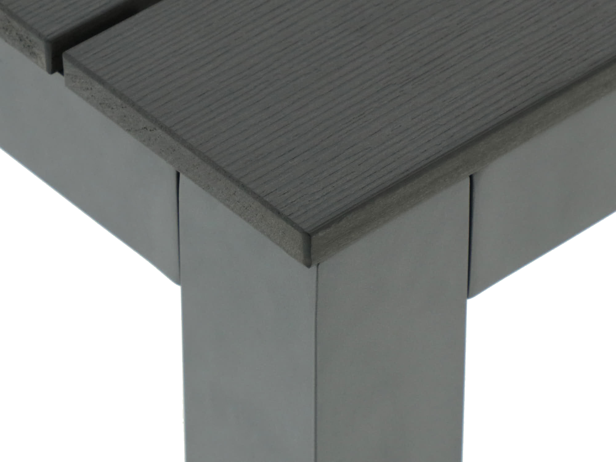 Polywood tafelblad: Het tafelblad lijkt op hout, maar is eigenlijk van kunststof. Dat betekent dat het water- en vuilafstotend is en niet kromtrekt. Dus geen zorgen over vlekken of onderhoud.