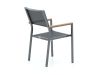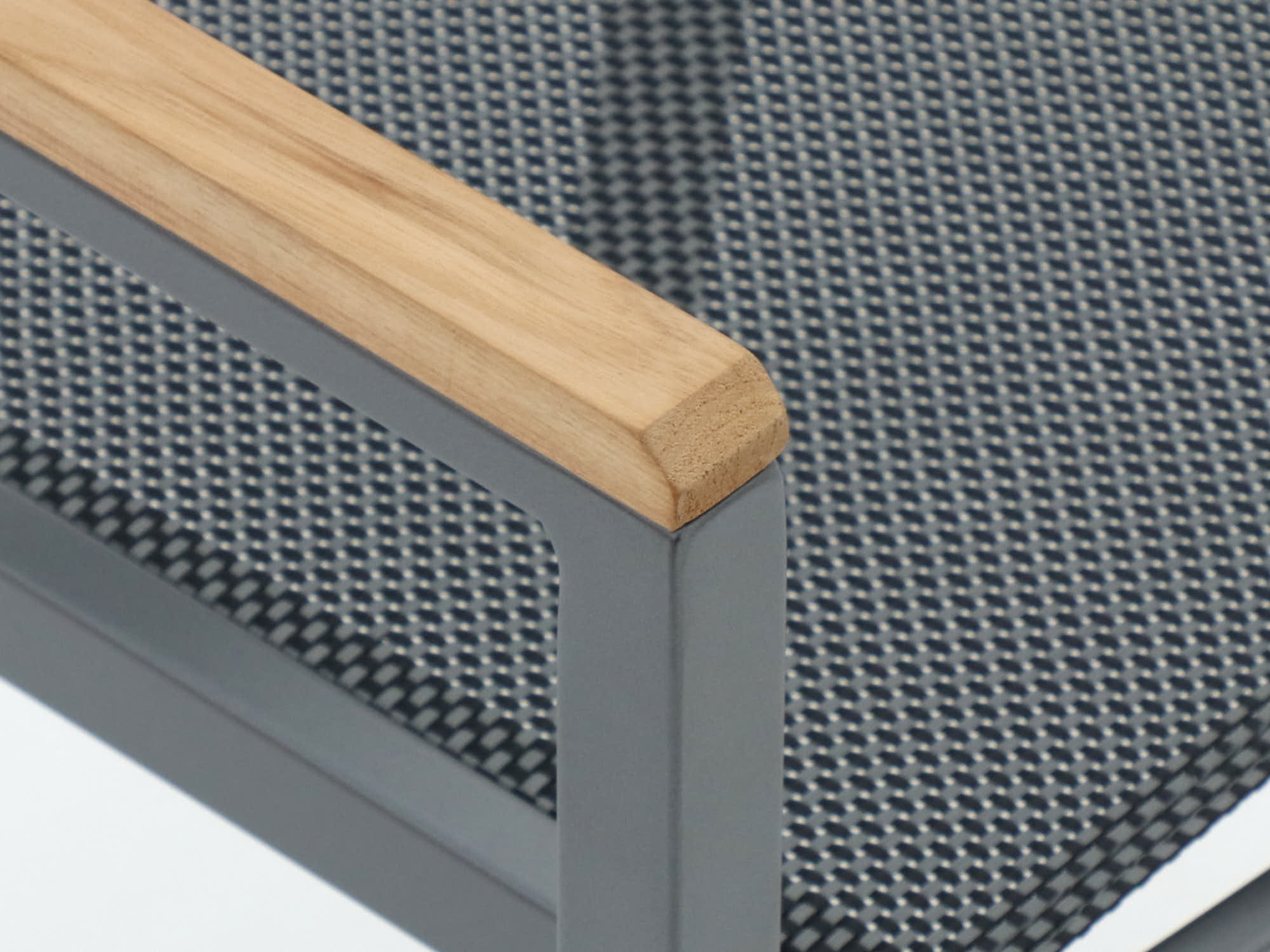 Teak armleuningen: Geeft een natuurlijke uitstraling en wordt juist mooier na verloop van tijd; af en toe een onderhoudsbeurt houdt het hout in vorm.