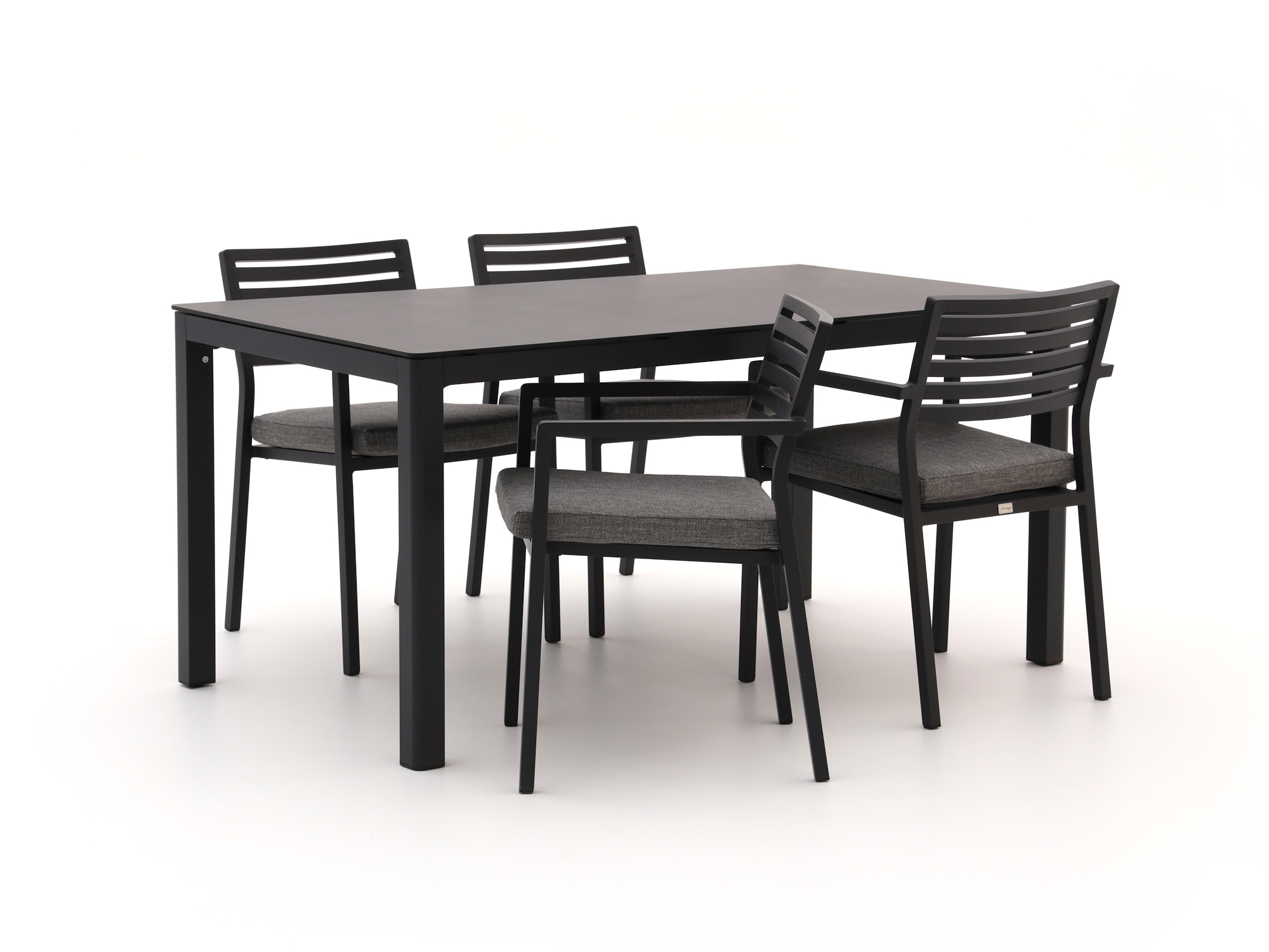 Ben je op zoek naar een tuinset die niet alleen stijlvol is, maar ook praktisch? Dan is de Bellagio Rumo/La Fonte dining tuinset echt iets voor jou! Deze set is ideaal voor gezellige etentjes met vrienden of familie in je tuin. Het strakke design in grijs-antraciet past perfect in elke buitenruimte en de bijgeleverde kussens zorgen ervoor dat je urenlang comfortabel zit. Het HPL tafelblad met een natuurlijke leisteenlook geeft een moderne touch en is bovendien makkelijk schoon te maken. Met deze set haal je niet alleen een blikvanger in huis, maar ook een praktische oplossing voor je tuin. Zet de barbecue maar aan, want met deze tuinset ben je klaar voor lange zomeravonden!
