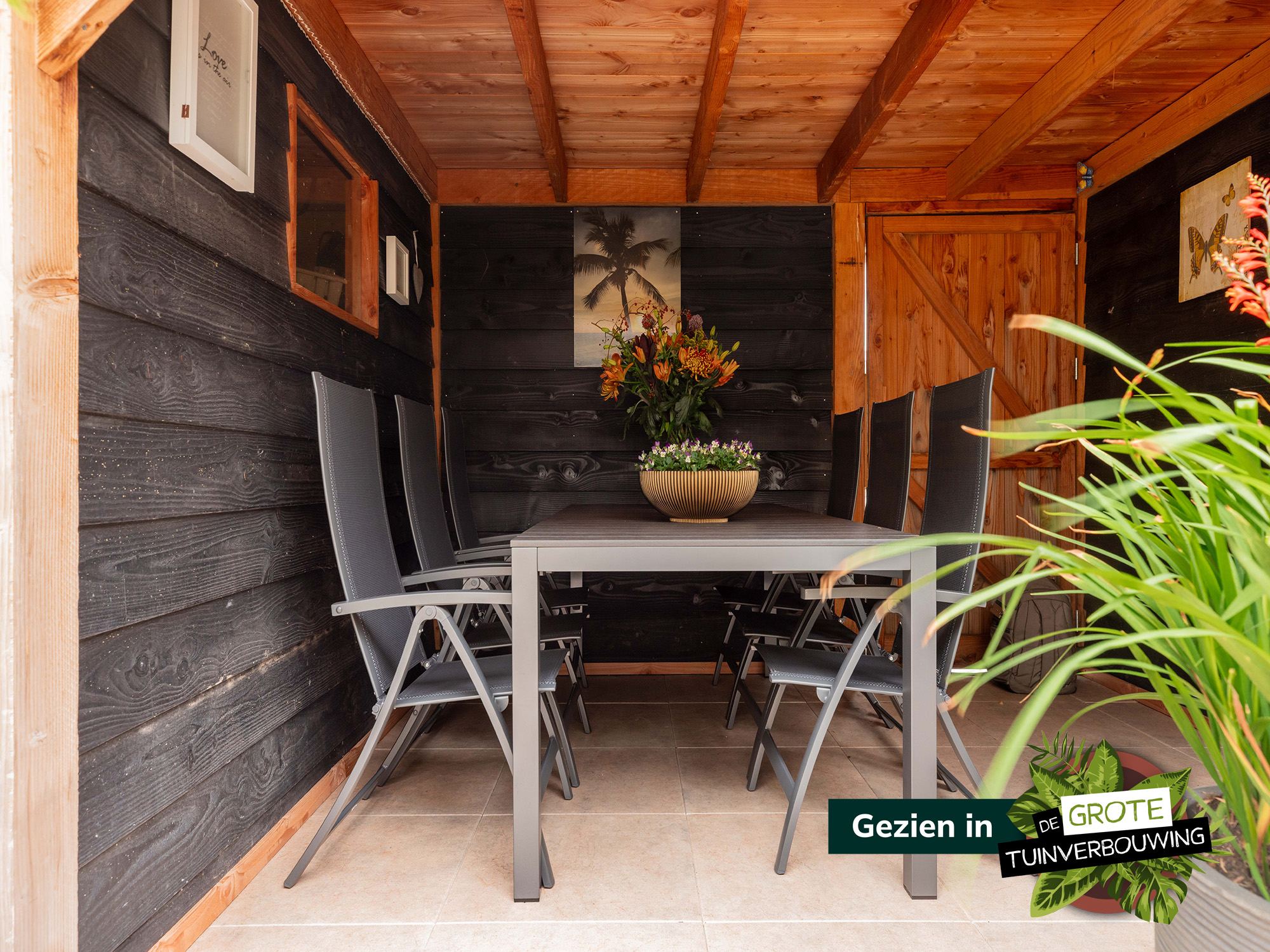Textileen zitting: Dit ademende materiaal vormt zich naar je lichaam, wat zorgt voor een comfortabele zit, zelfs tijdens lange zomerse diners.