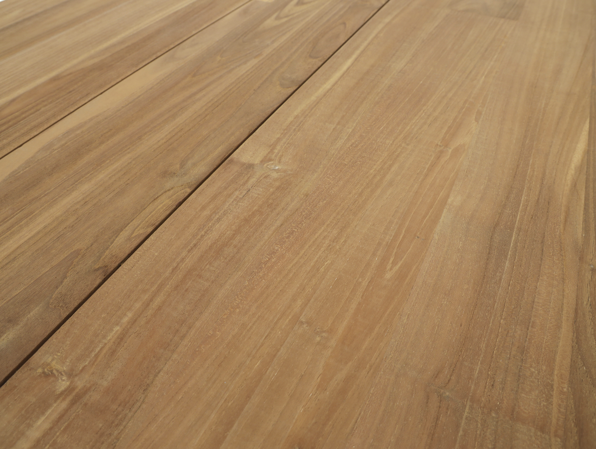 • Teak in natural kleur: Dankzij de natuurlijke houtkleur krijgt je terras meteen een warme sfeer, zeker als je graag lang natafelt.